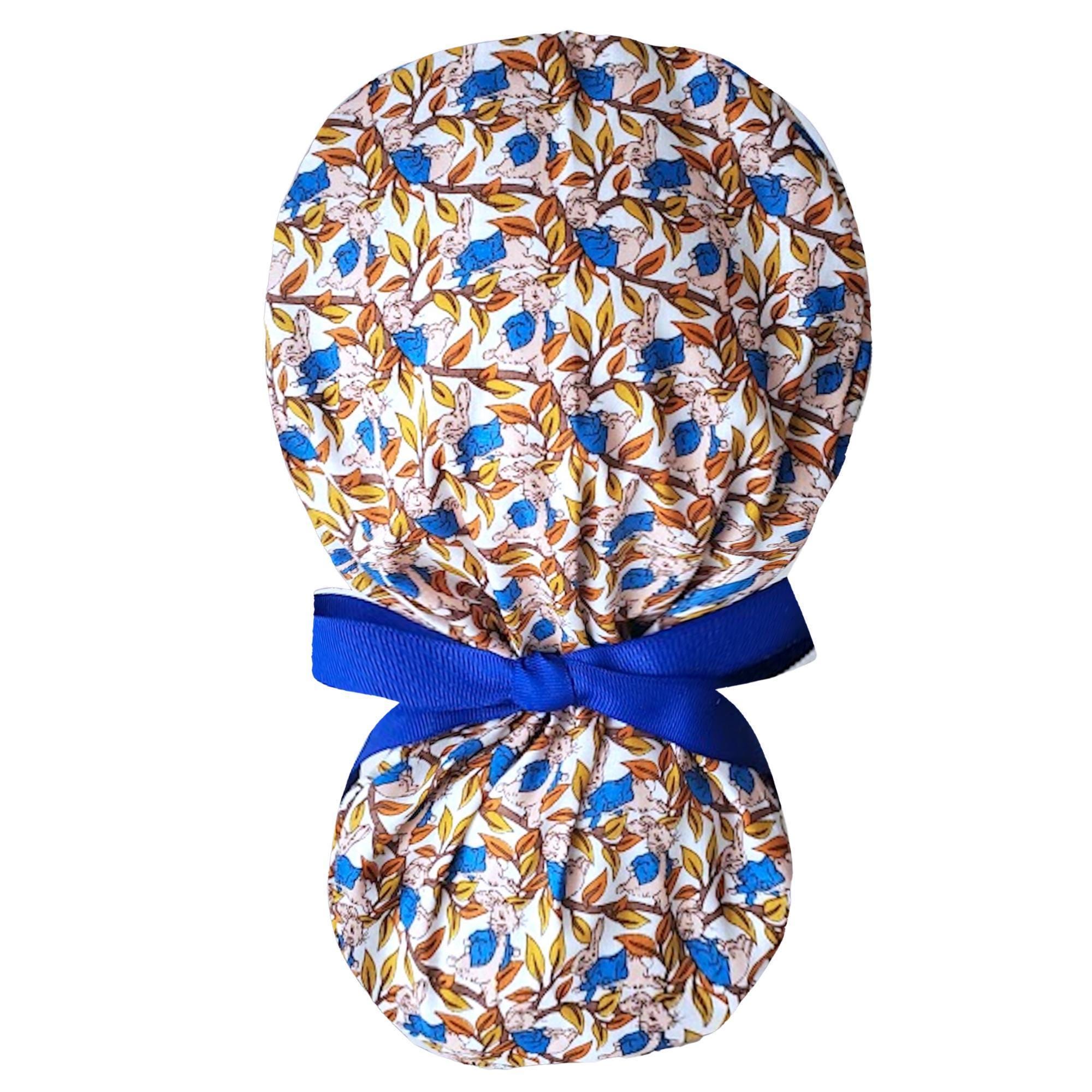 Ponytail Scrub Cap: Bunny Print, Cotton with Satin Lining