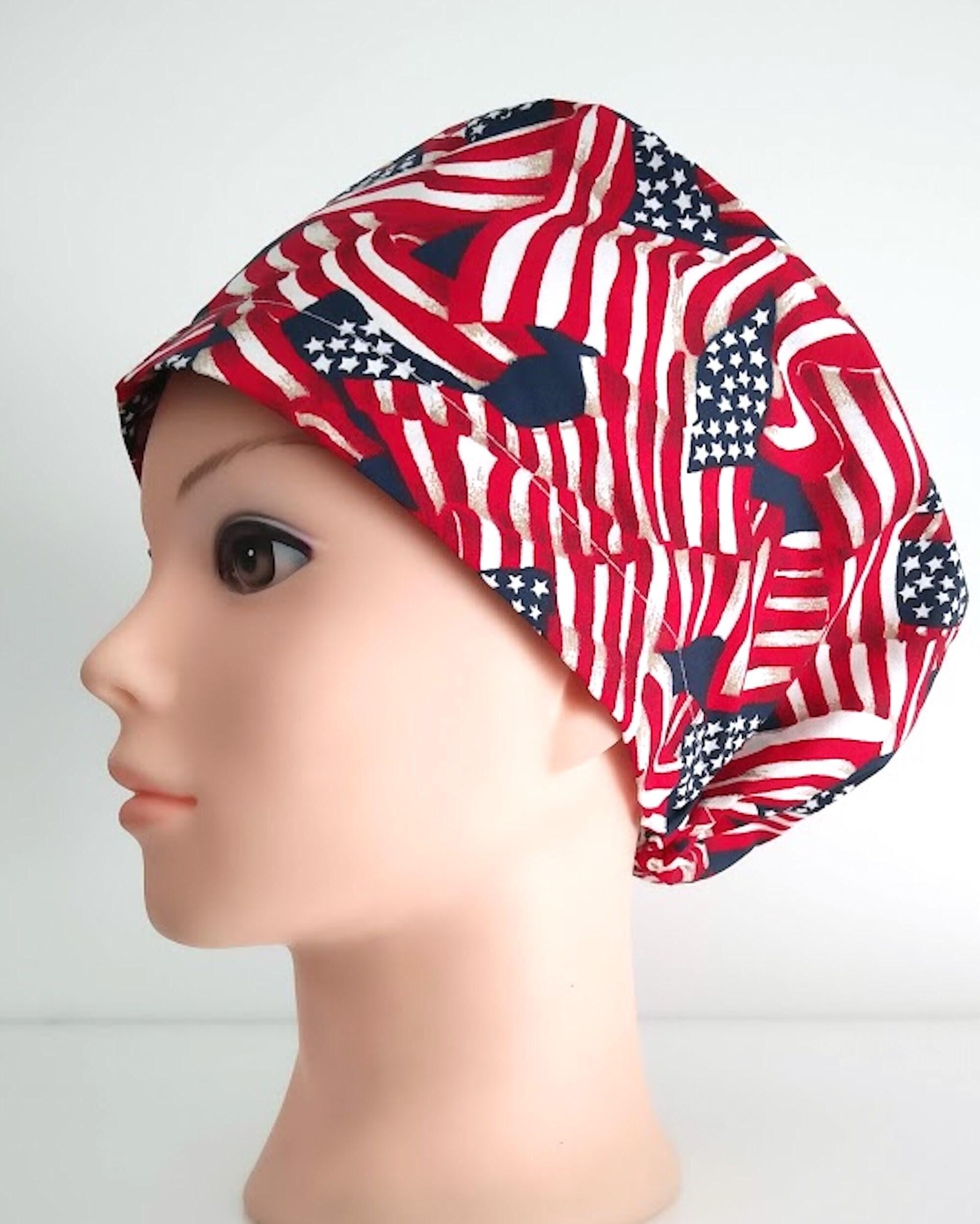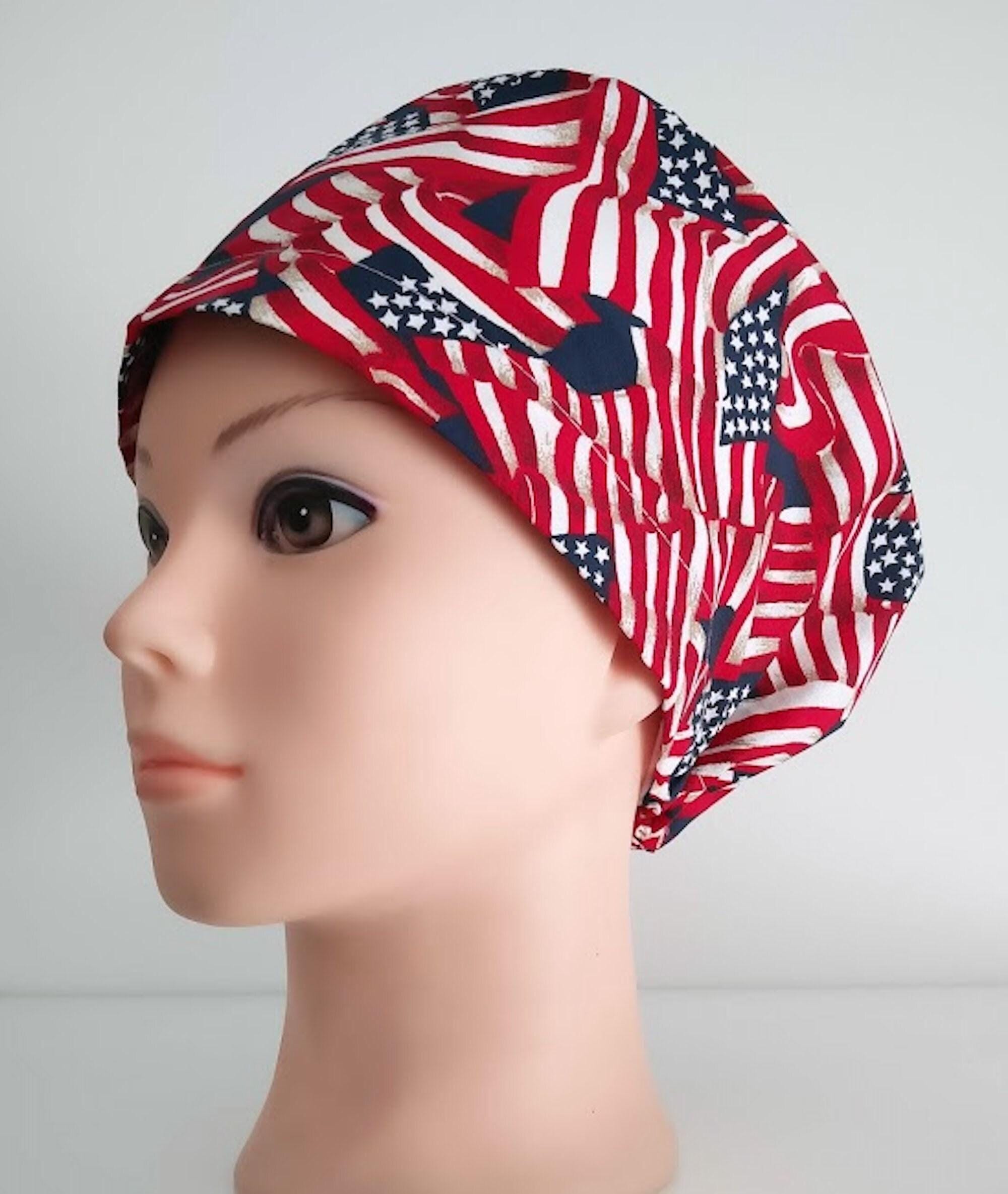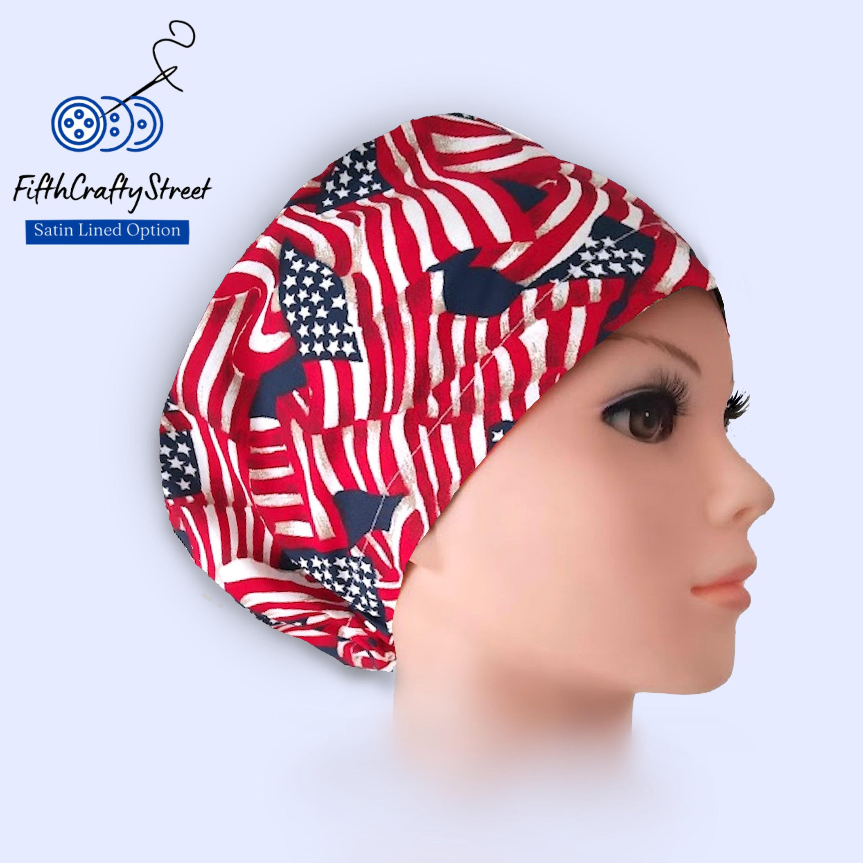 American Flag Euro Scrub Cap: Patriotic 4th of July Surgical Hat (Satin Lining Option)