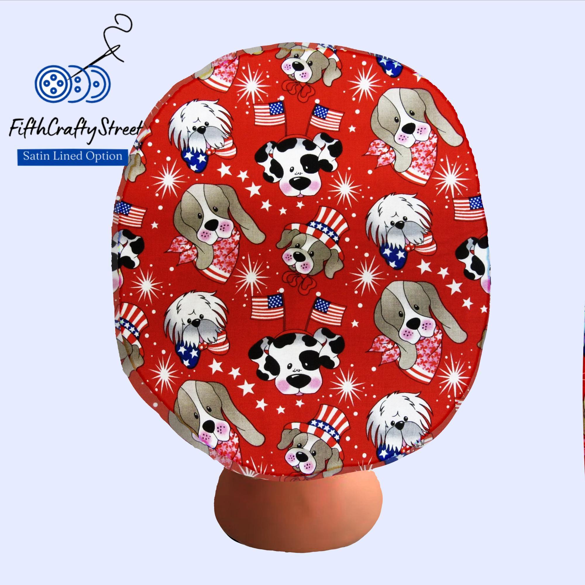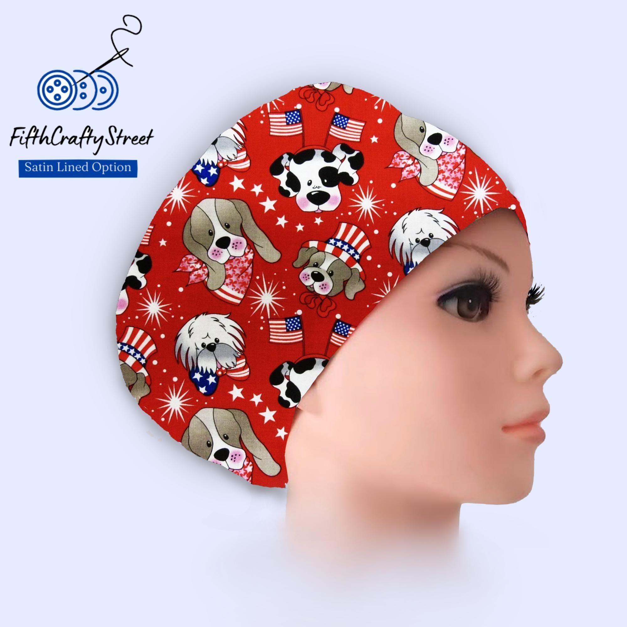 Patriotic Dog Euro Scrub Cap: 4th of July Surgical Cap (Satin Lining Option)