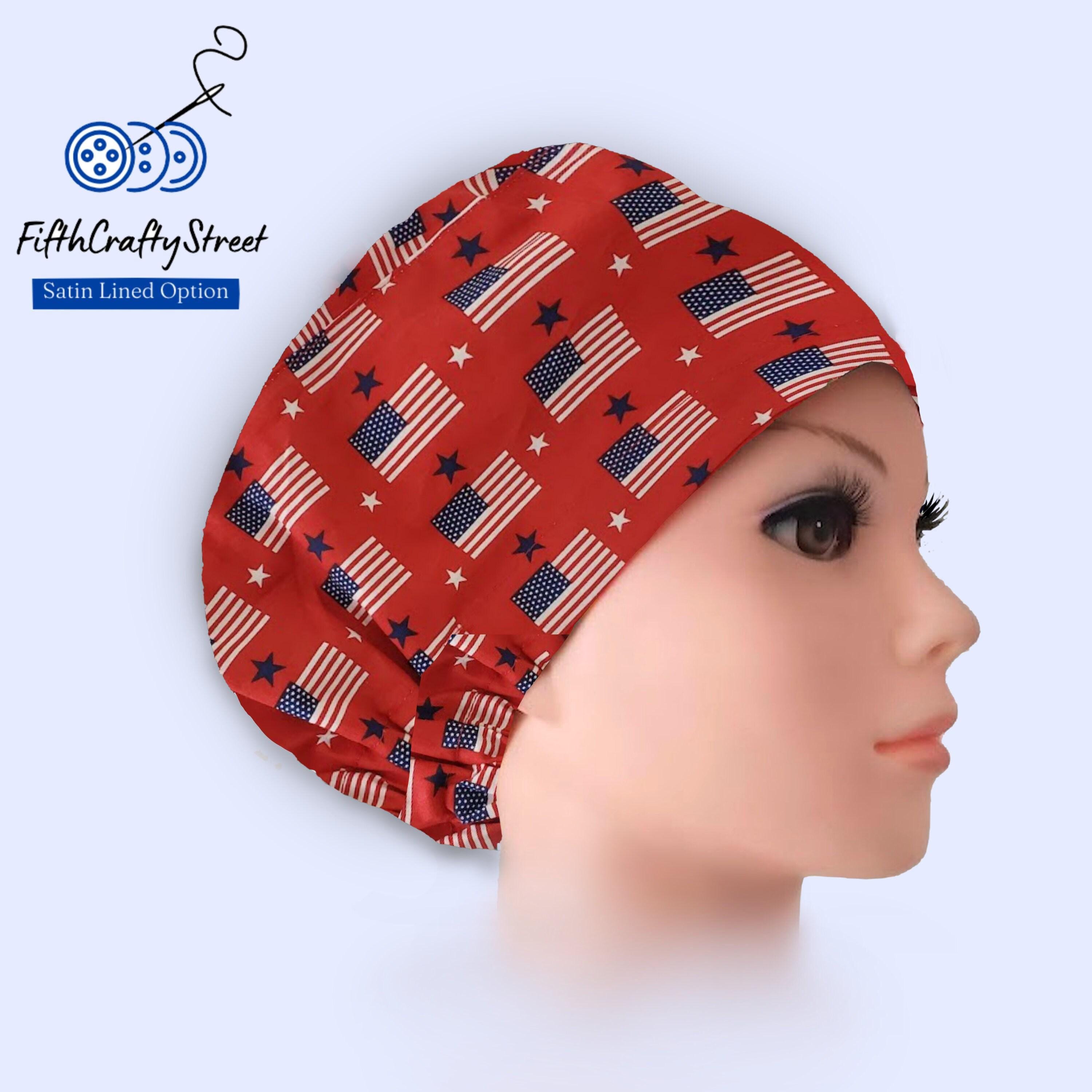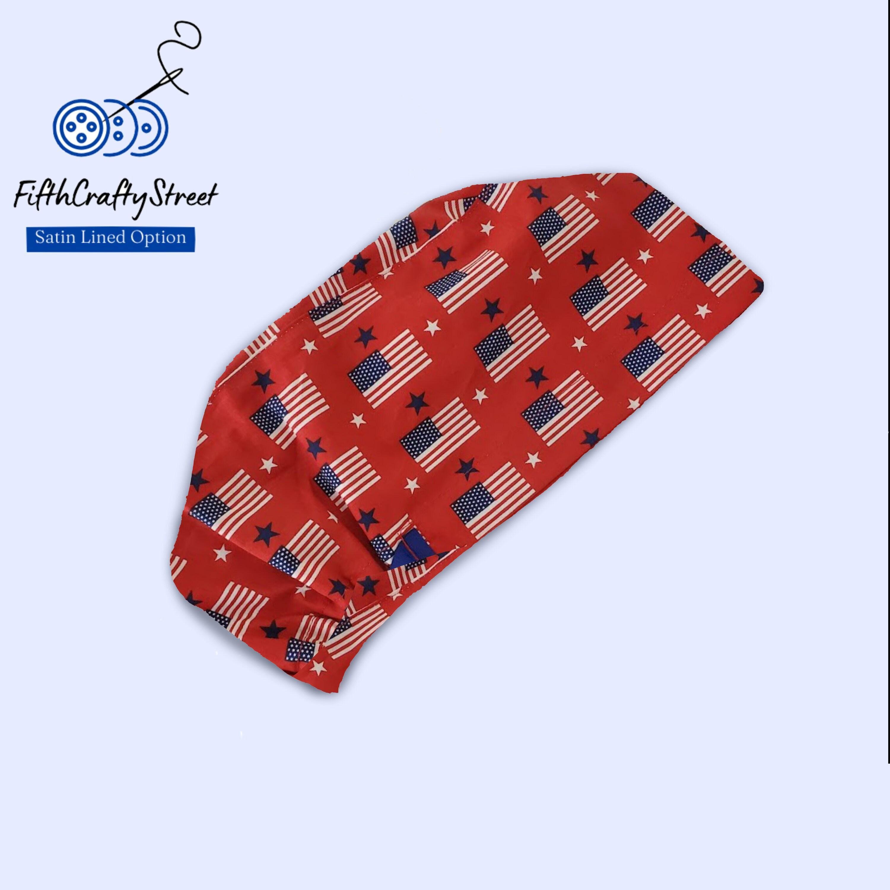 Euro Scrub Cap - Adjustable by toggle - Satin Lining option - American Flag -