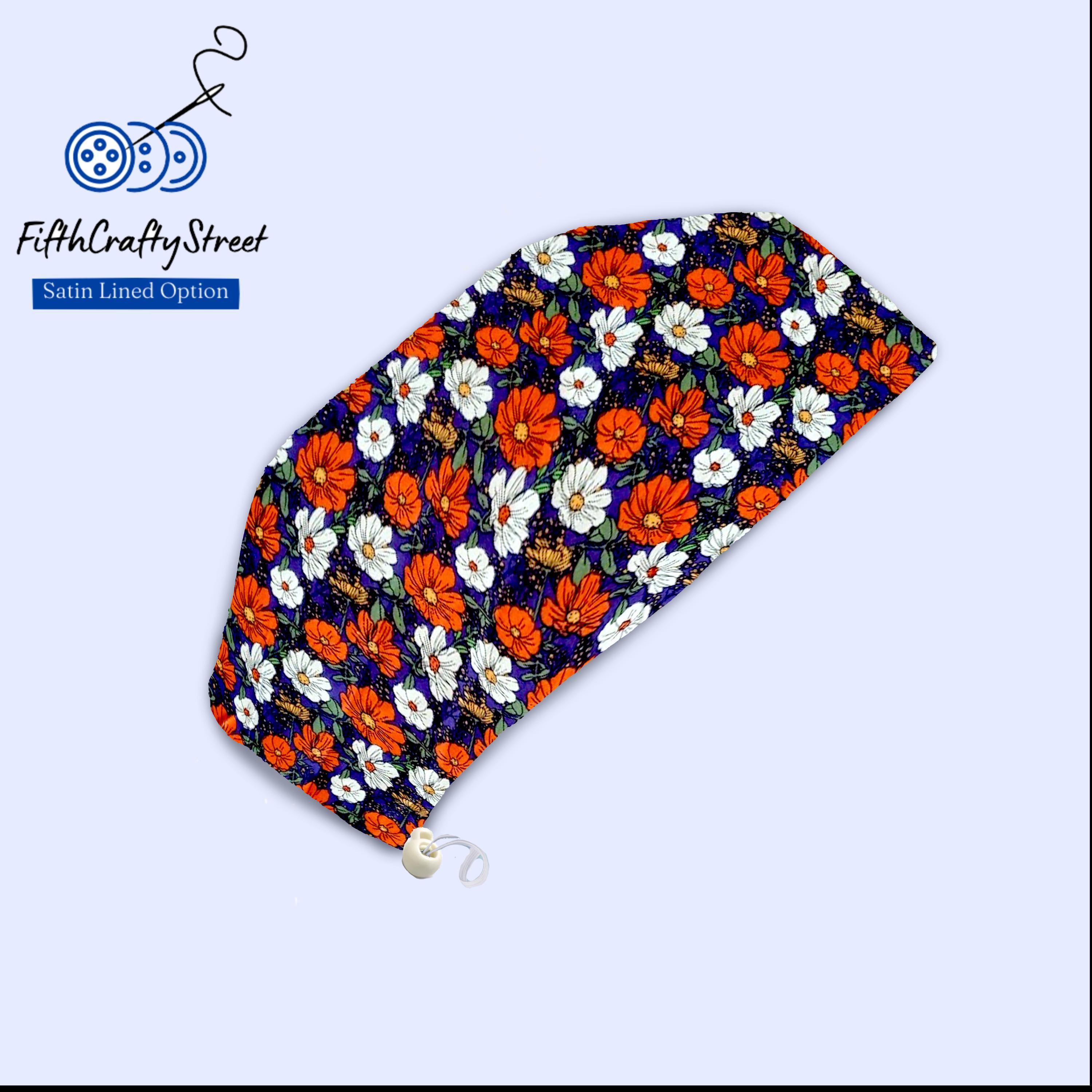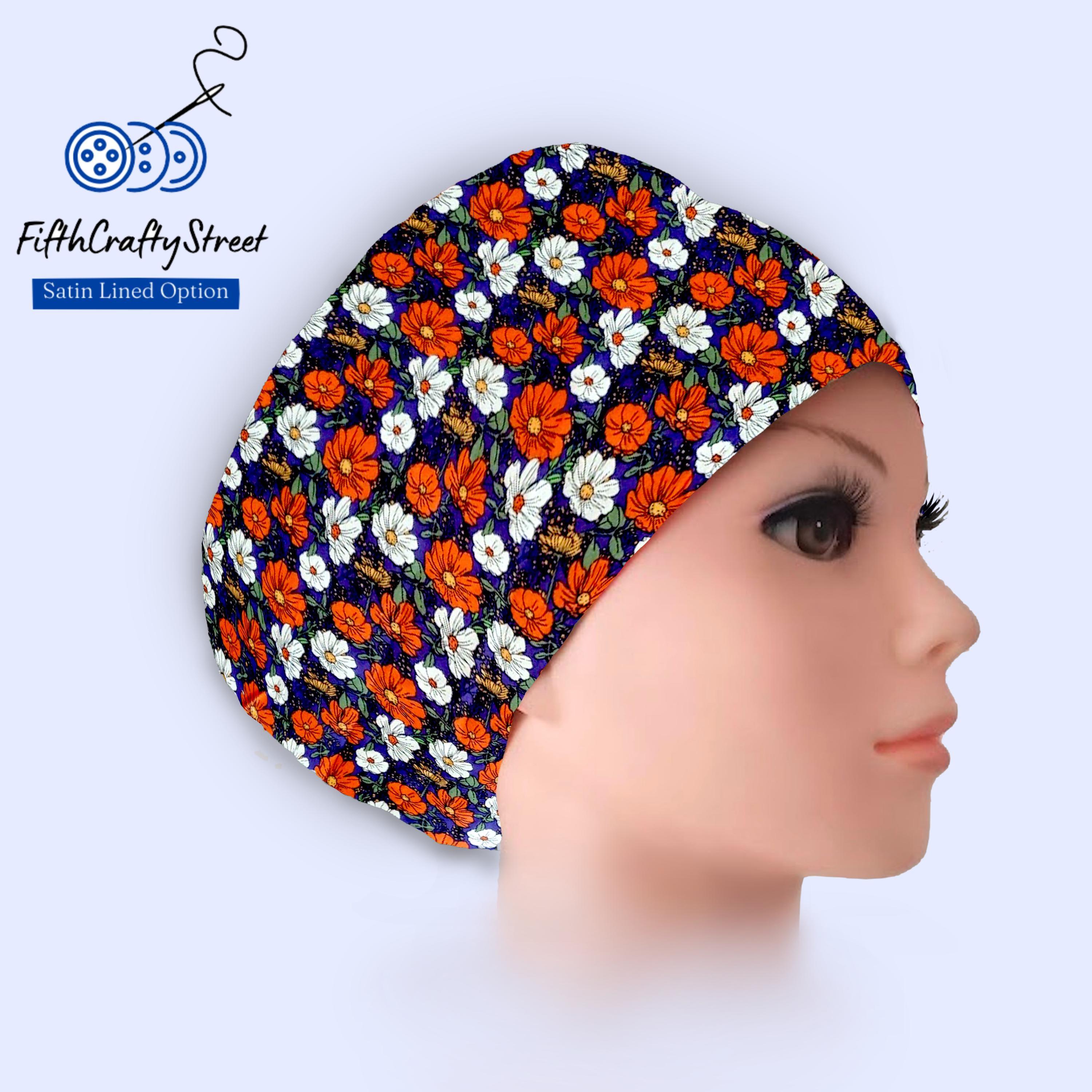 Floral Print - Euro Scrub Cap - Adjustable - Satin Buttons Lined option