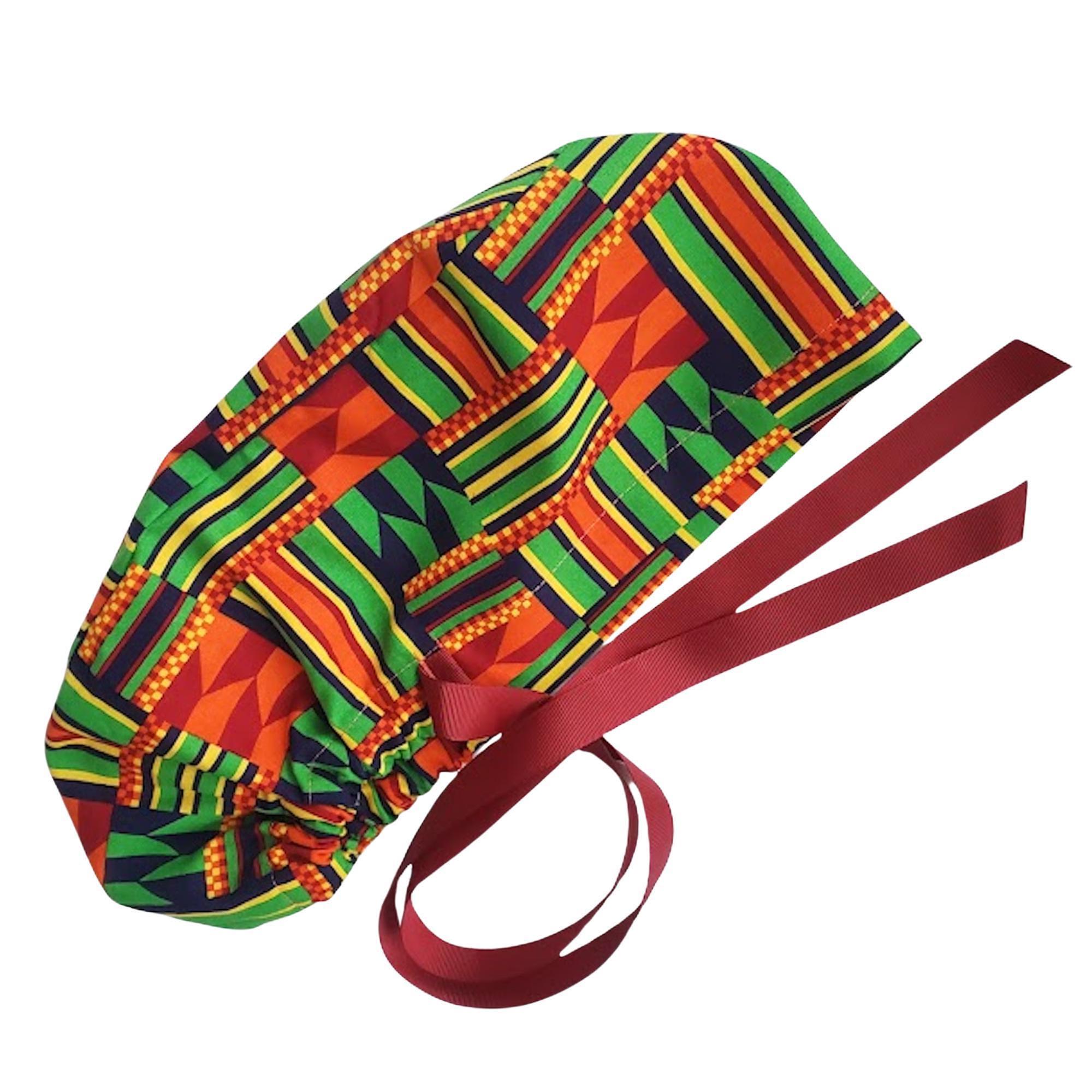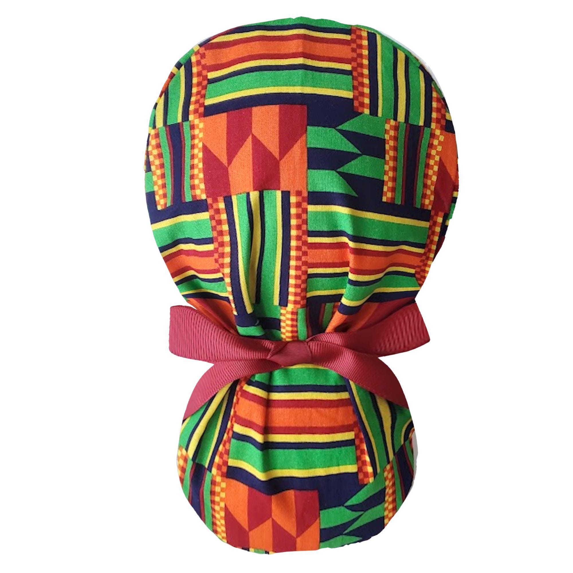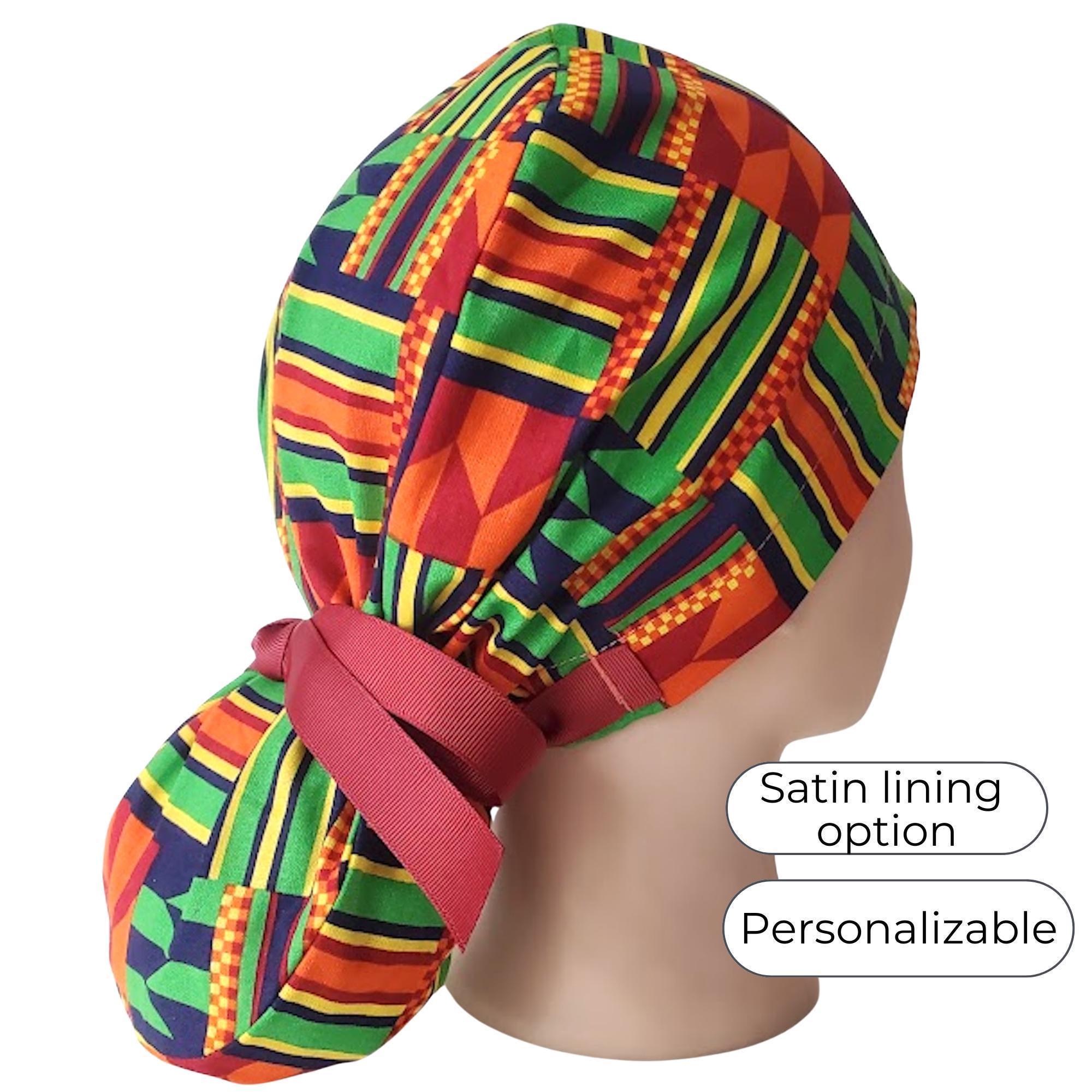 Ponytail scrub cap - Surgical Caps - geometric pattern - Satin Lined Option