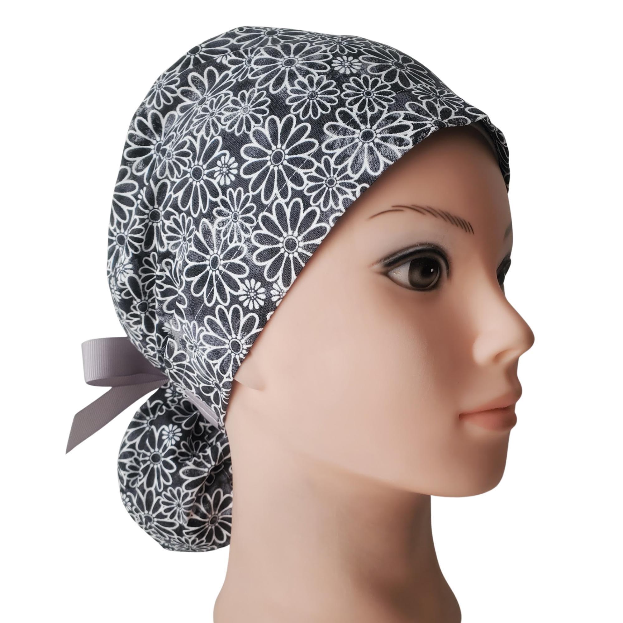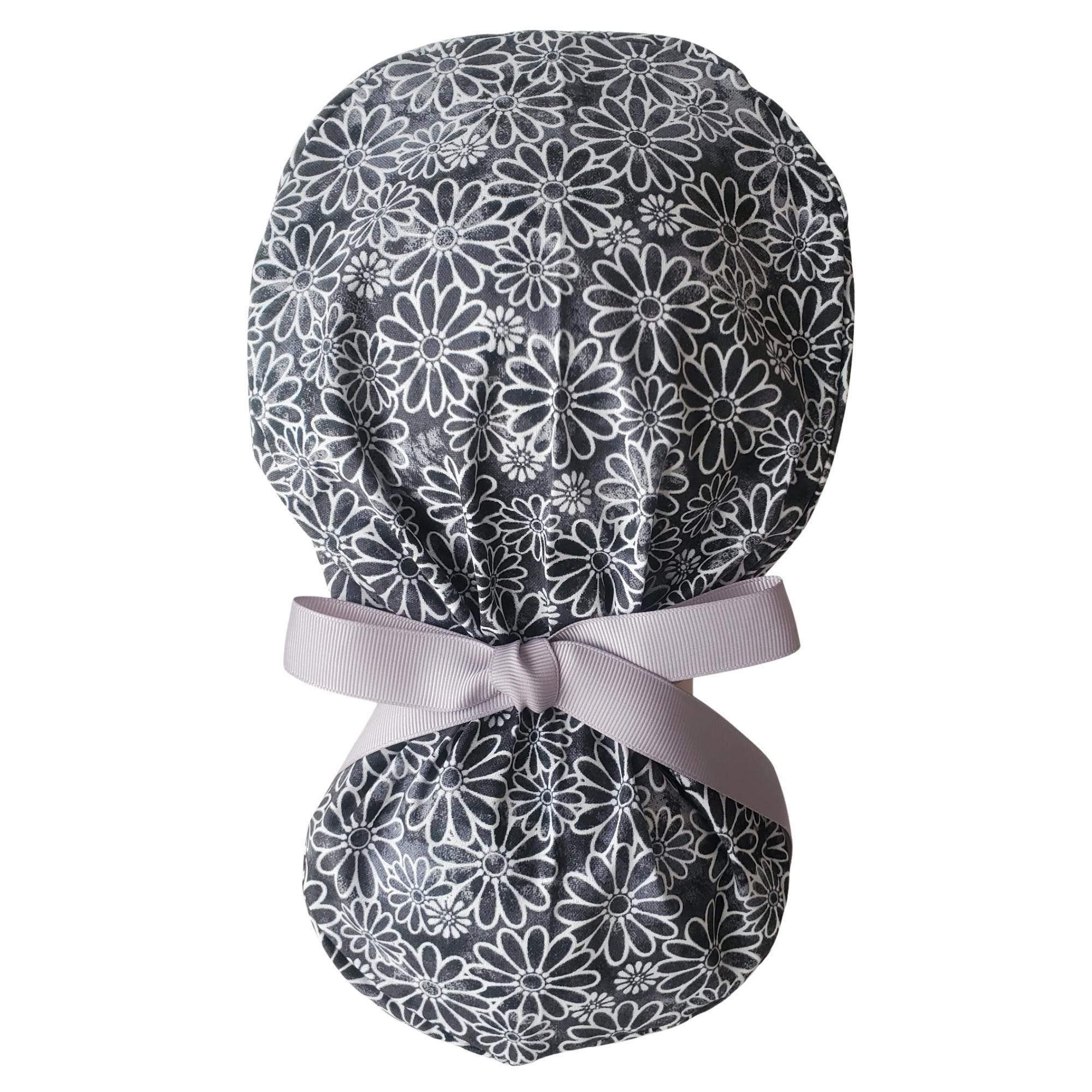 Midnight Daisy - Ponytail Scrub Cap for Women - Surgical Cap Satin Lined Option
