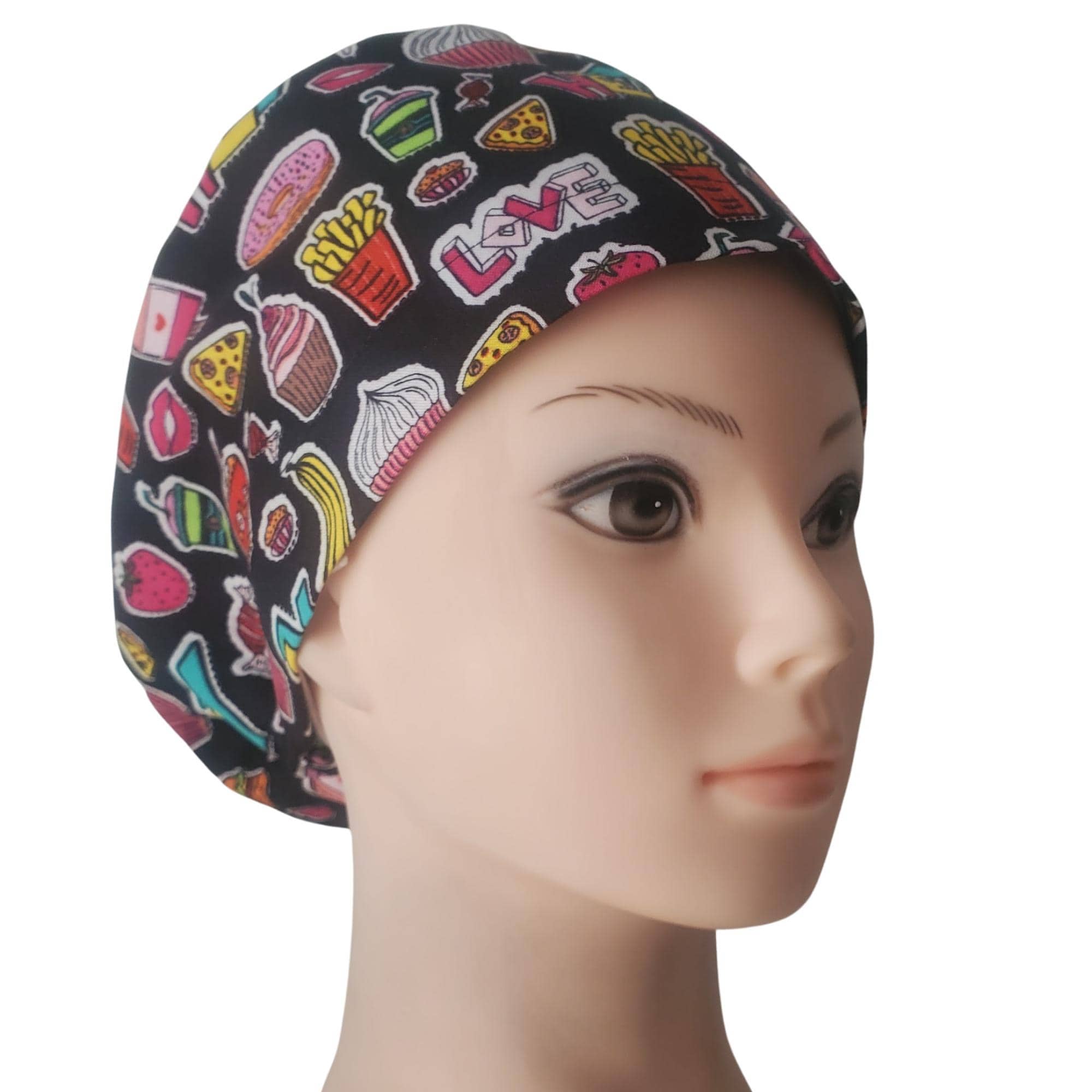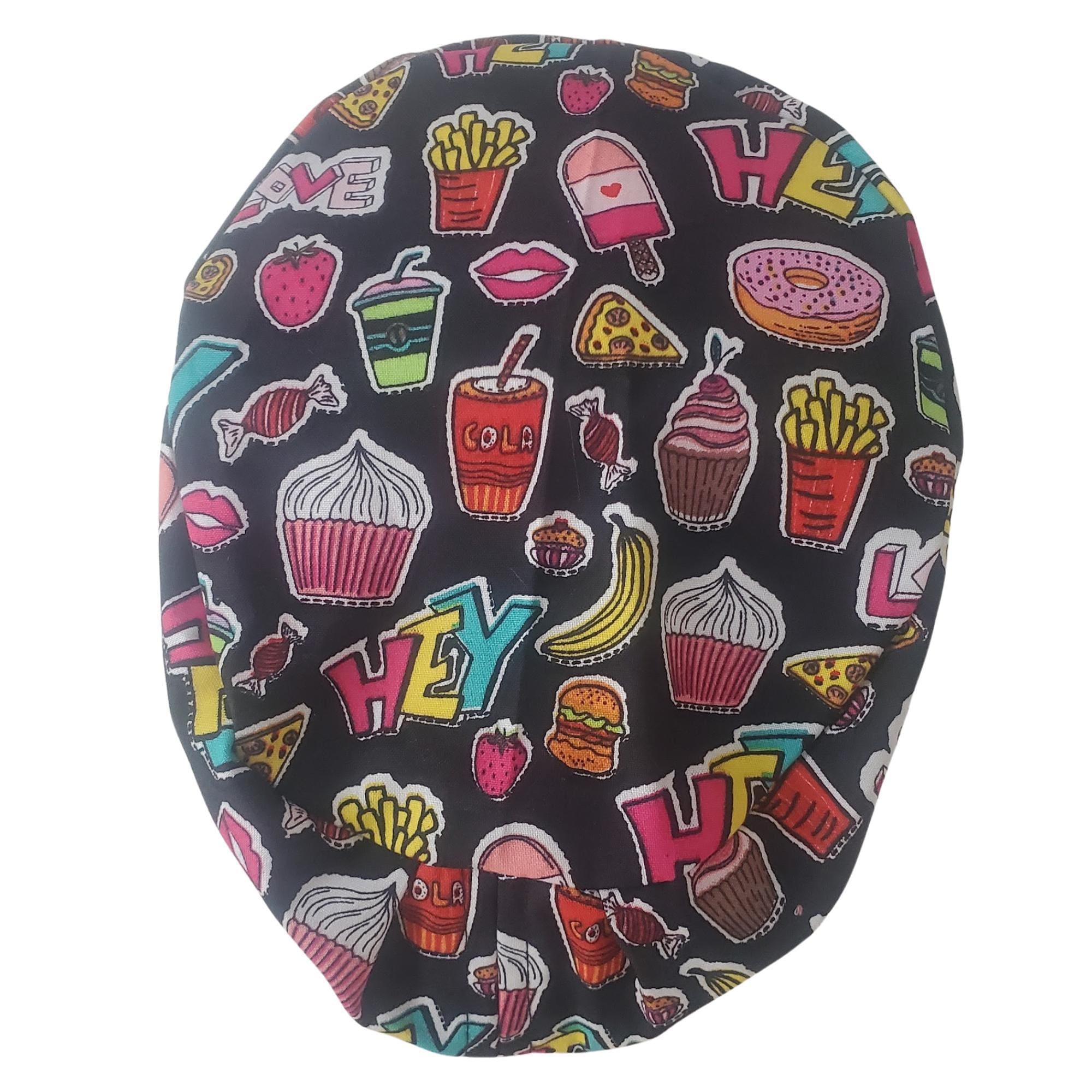 Euro Scrub Caps - Adjustable - Satin Lining option - Snack Attack -