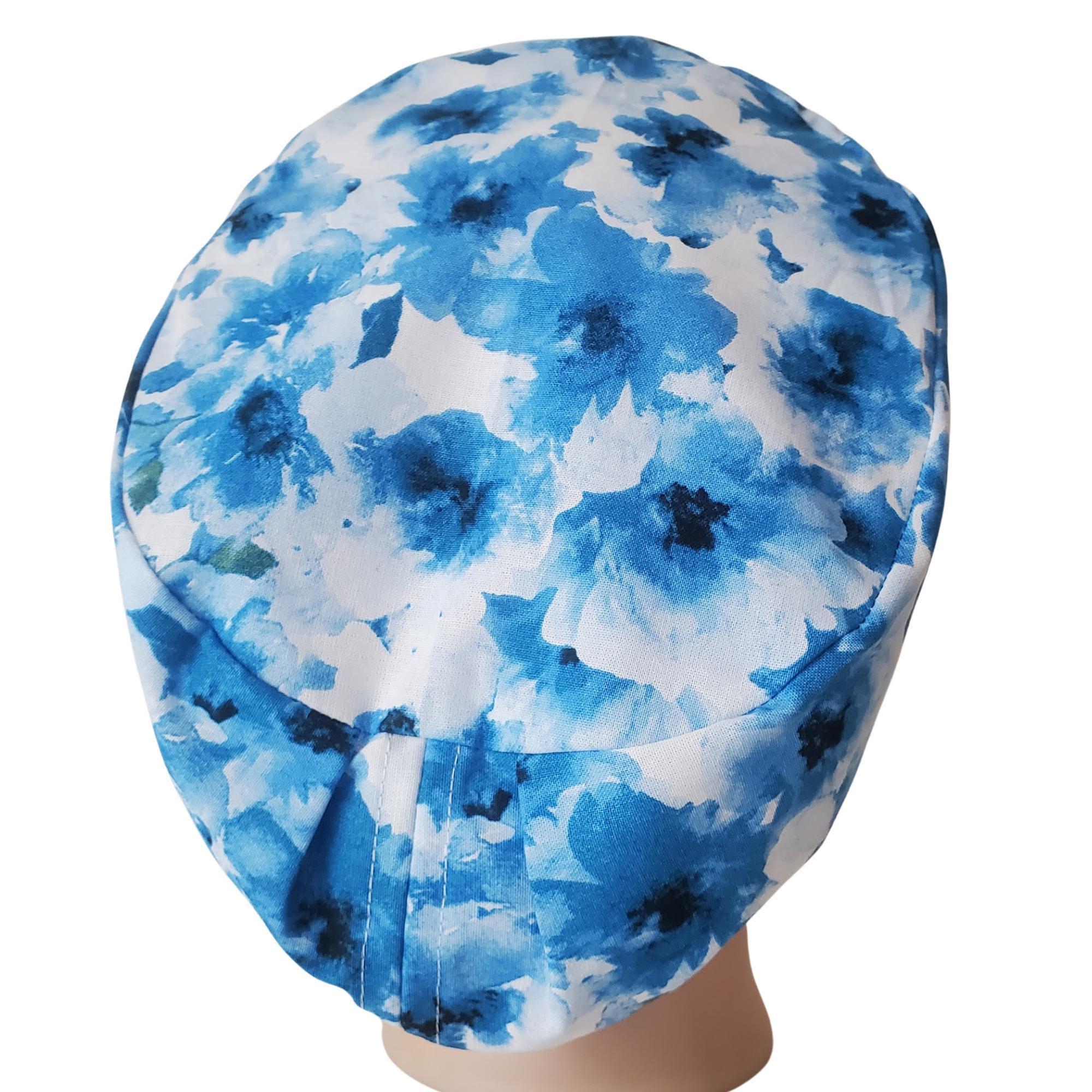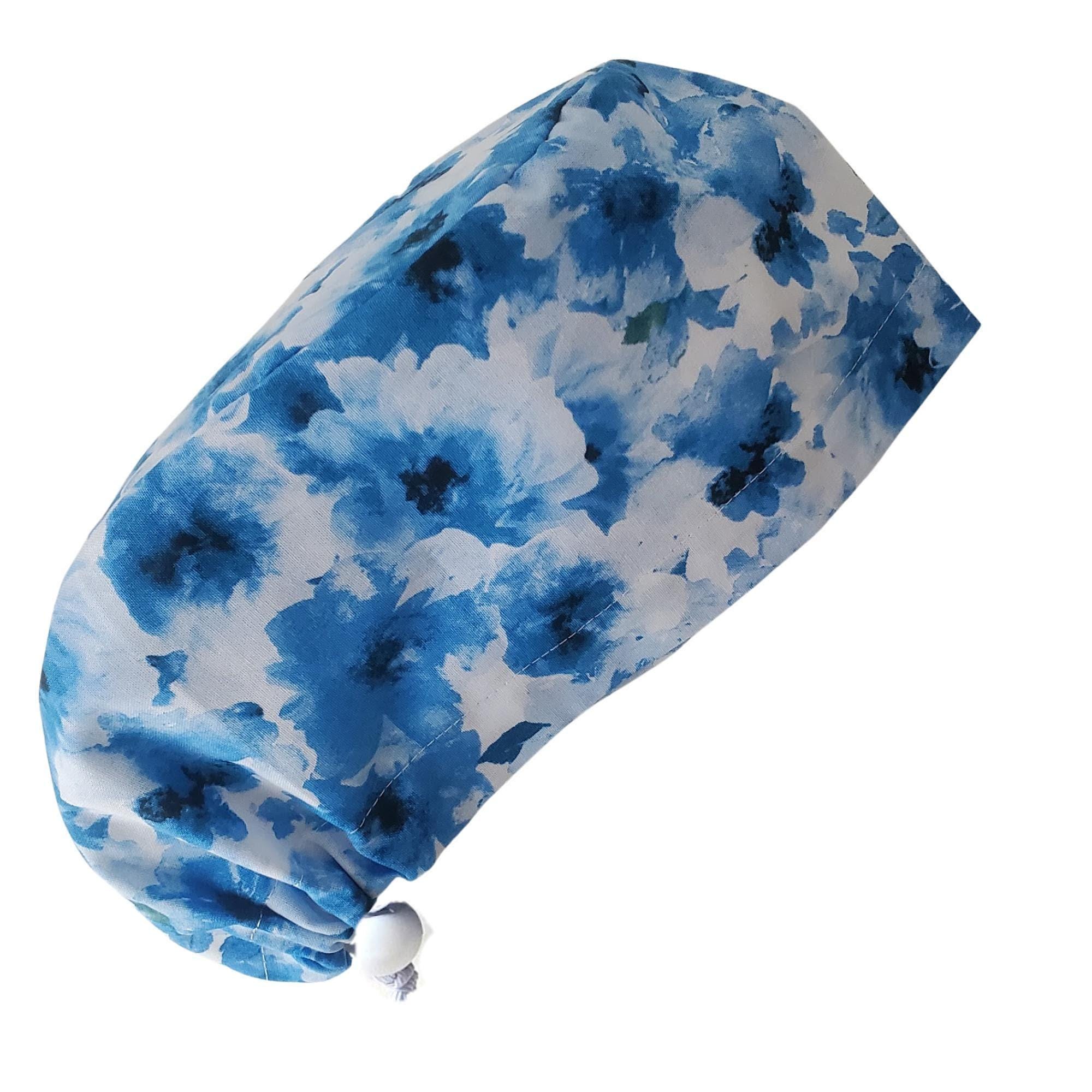 Blue Bloom - Euro Scrub Cap - Adjustable - Satin Buttons Lined option