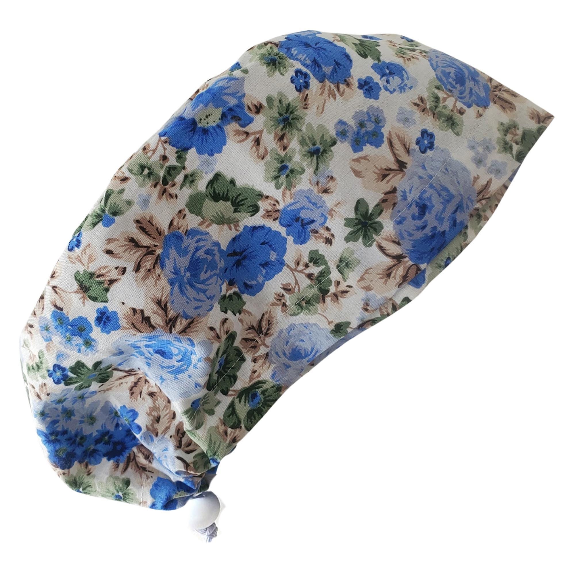 Royal Blue Rose - Euro Scrub Cap - Adjustable - Satin Buttons Lined option