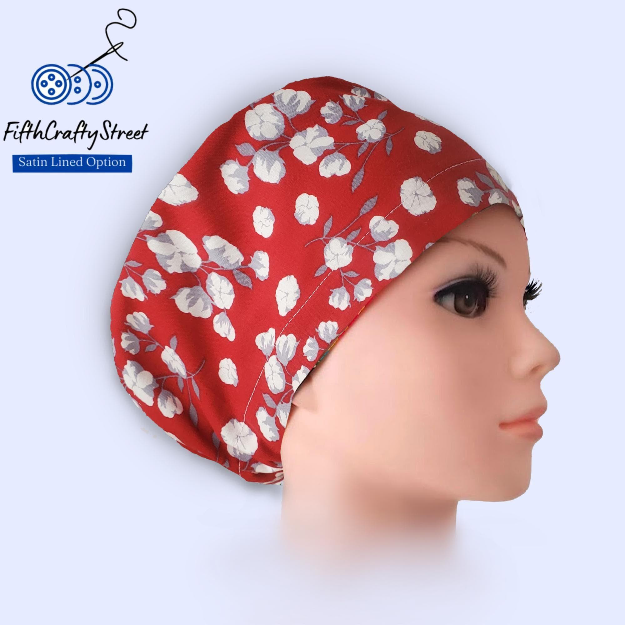 Crimson Cotton - Euro Scrub Cap - Adjustable - Satin Buttons Lined option
