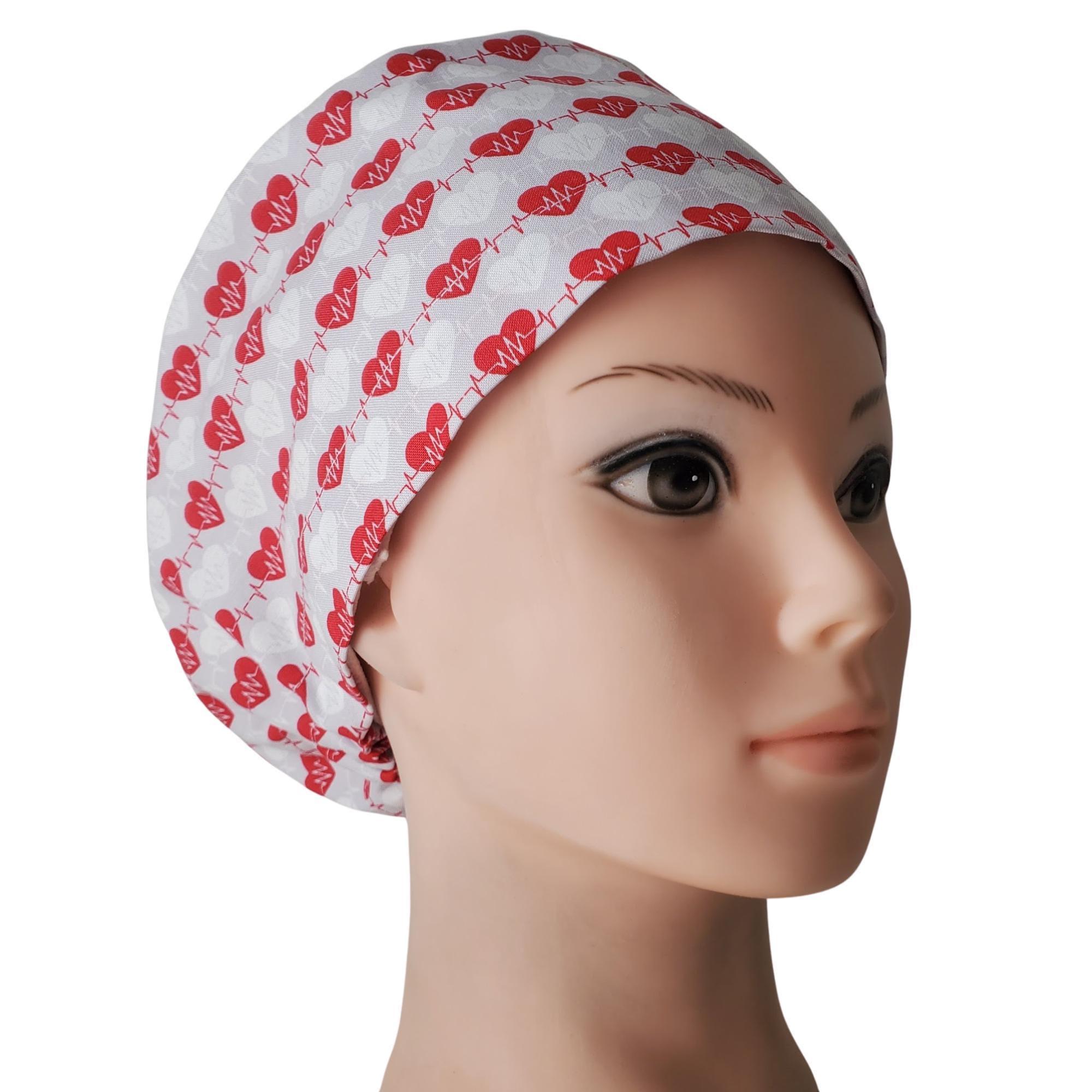 Love in Every Beat - Euro Scrub Cap - Adjustable - Satin Buttons Lined option