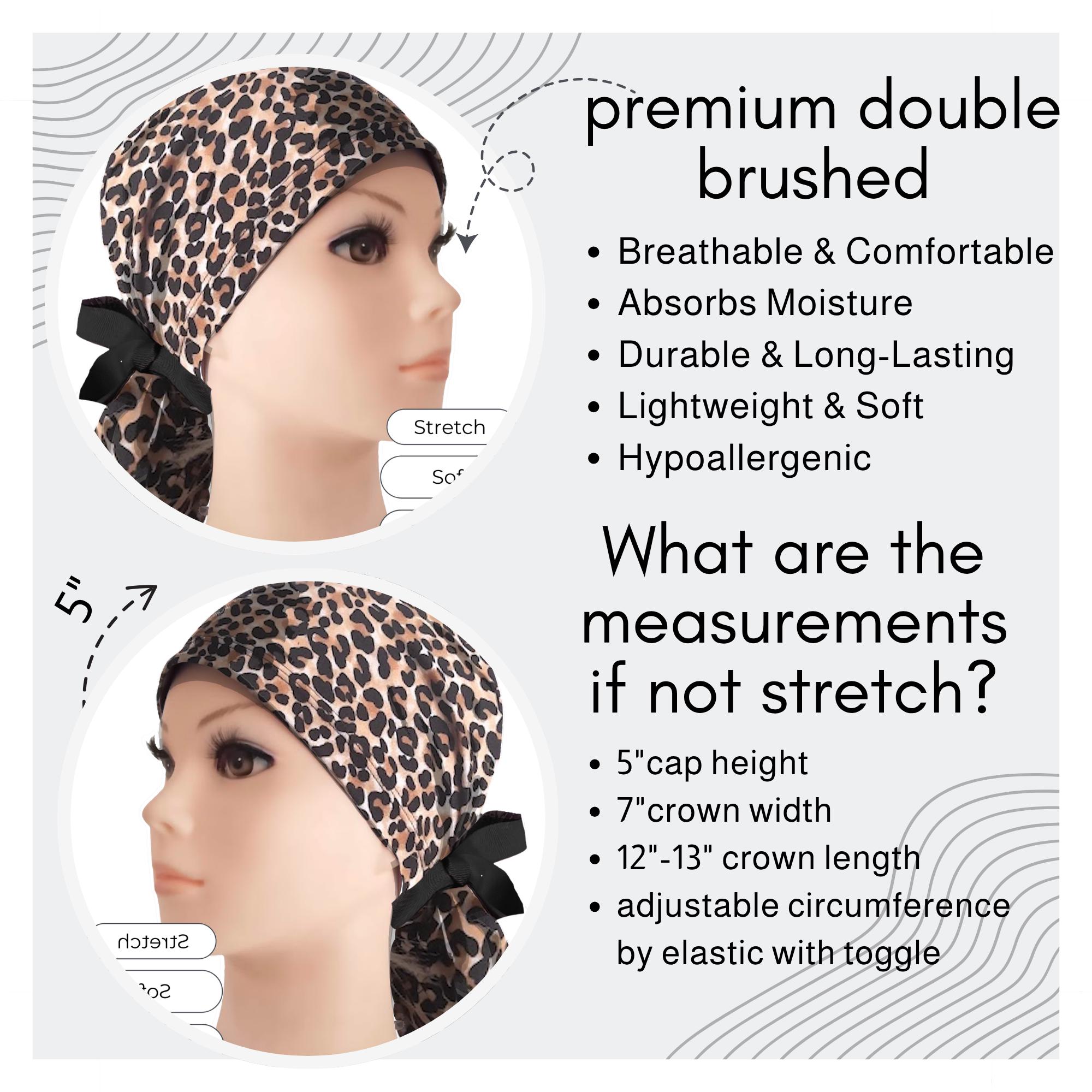 The adjustable toggle back ensures a snug, personalized fit, while the ribbon tie adds a sleek finish. Designed to fit long hair or buns comfortably without slipping, this scrub cap balances performance with personality.