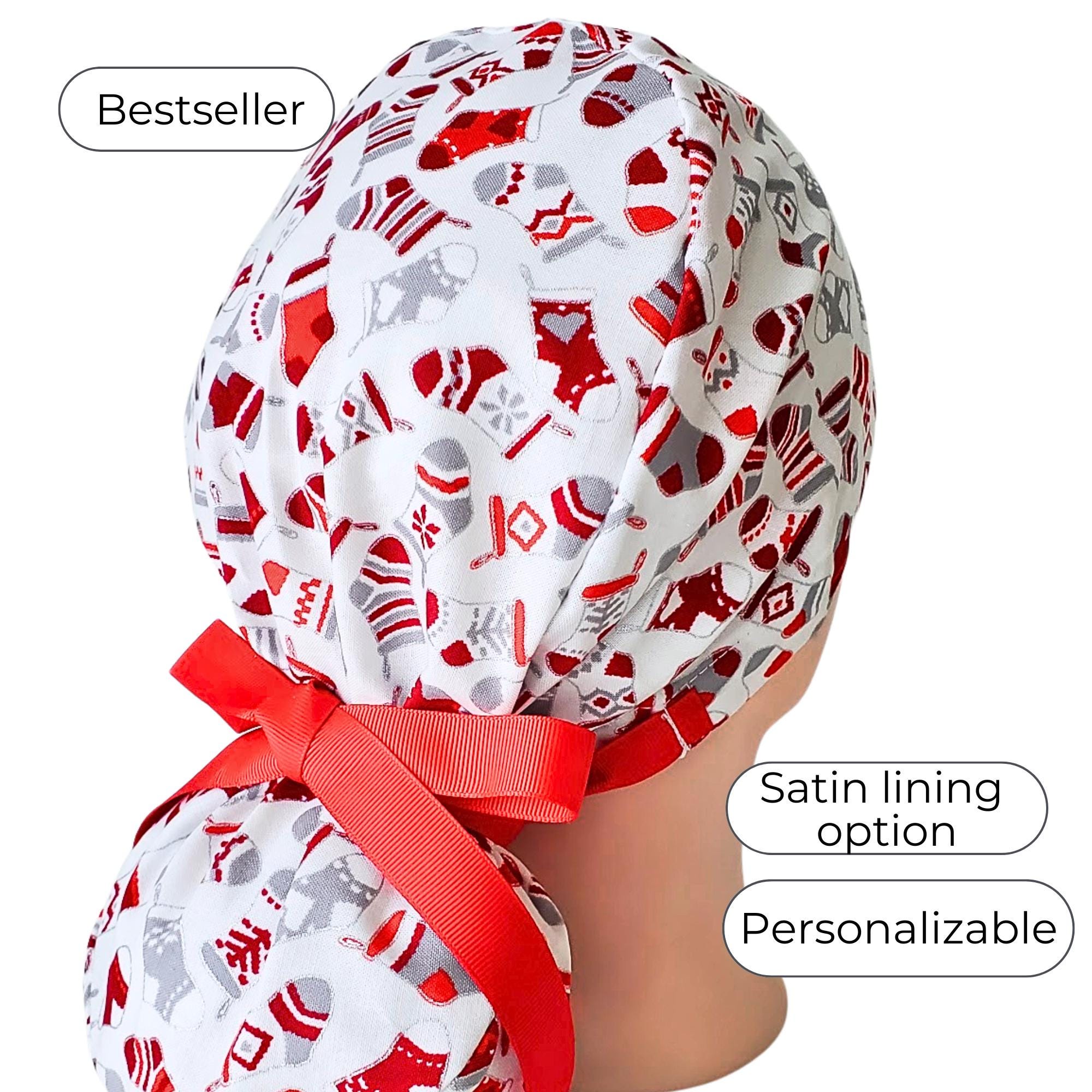 Sweeten your shift with this Winter theme Christmas Ponytail Scrub Cap — the perfect festive touch for the holiday season! This scrub hat brings cheerful holiday vibes to the workplace.
