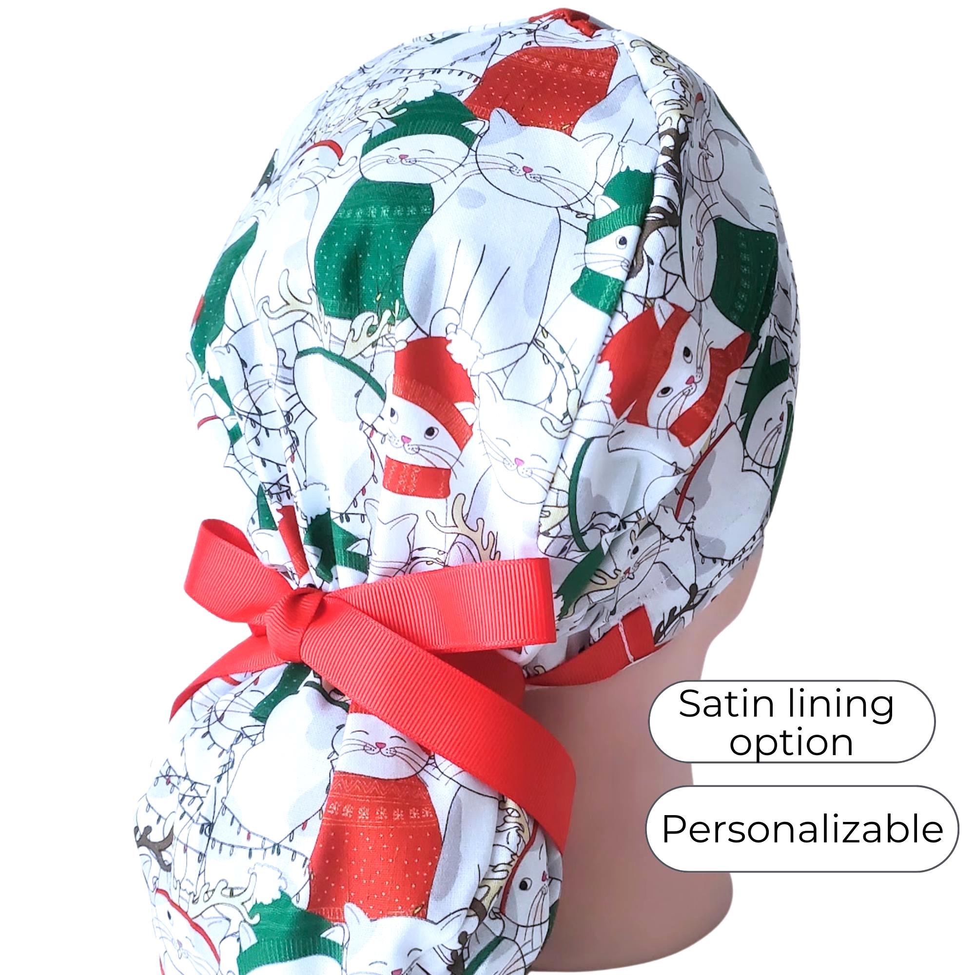 Bring holiday cheer to every shift with this Christmas Ornaments Euro Scrub Cap. Featuring festive ornaments, holly, and winter greenery, this cheerful scrub hat offers style and comfort for the season. The euro fit sits smoothly against the head, while the adjustable toggle allows a secure, custom fit. Add the optional satin lining to protect hair from frizz and breakage during long shifts.