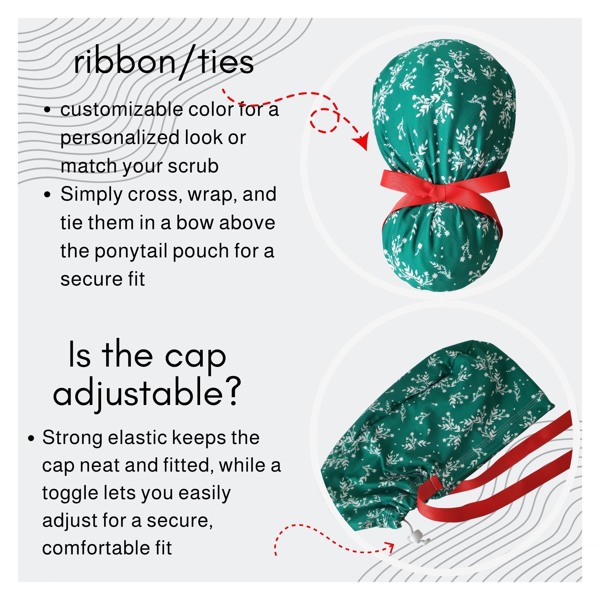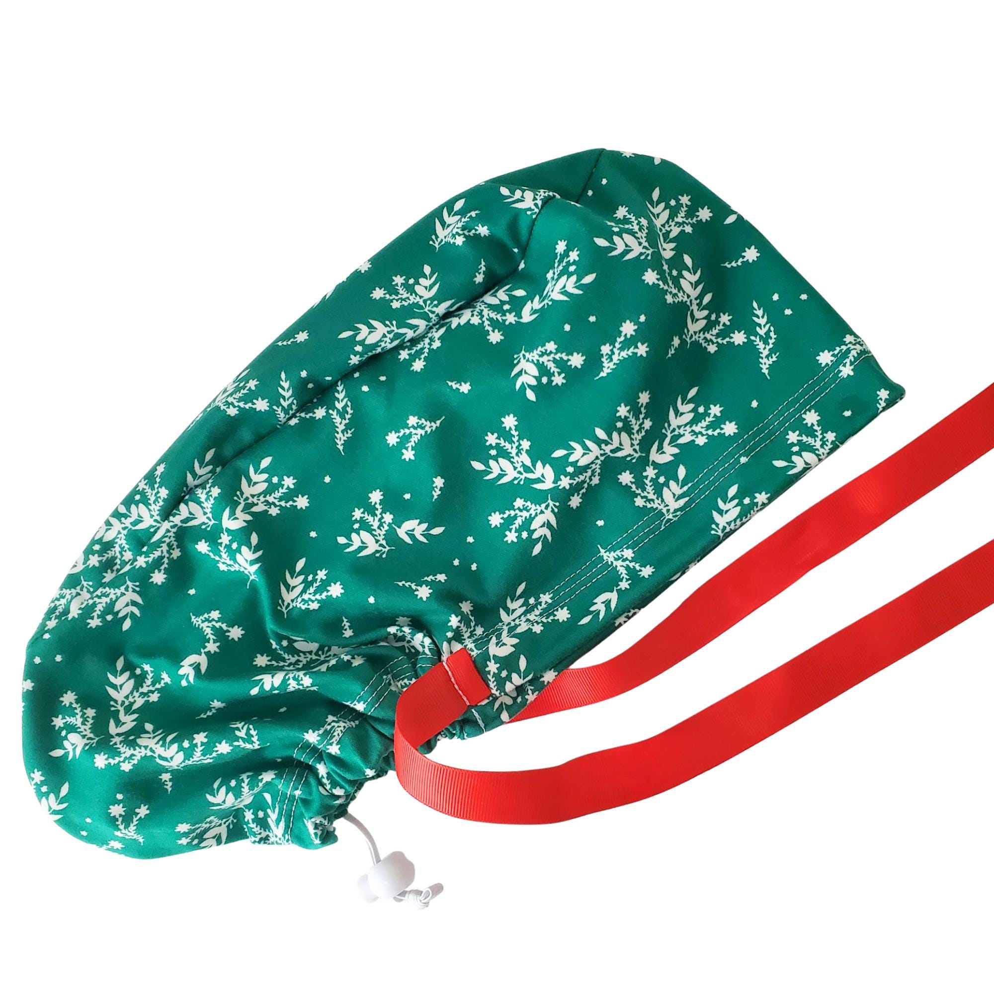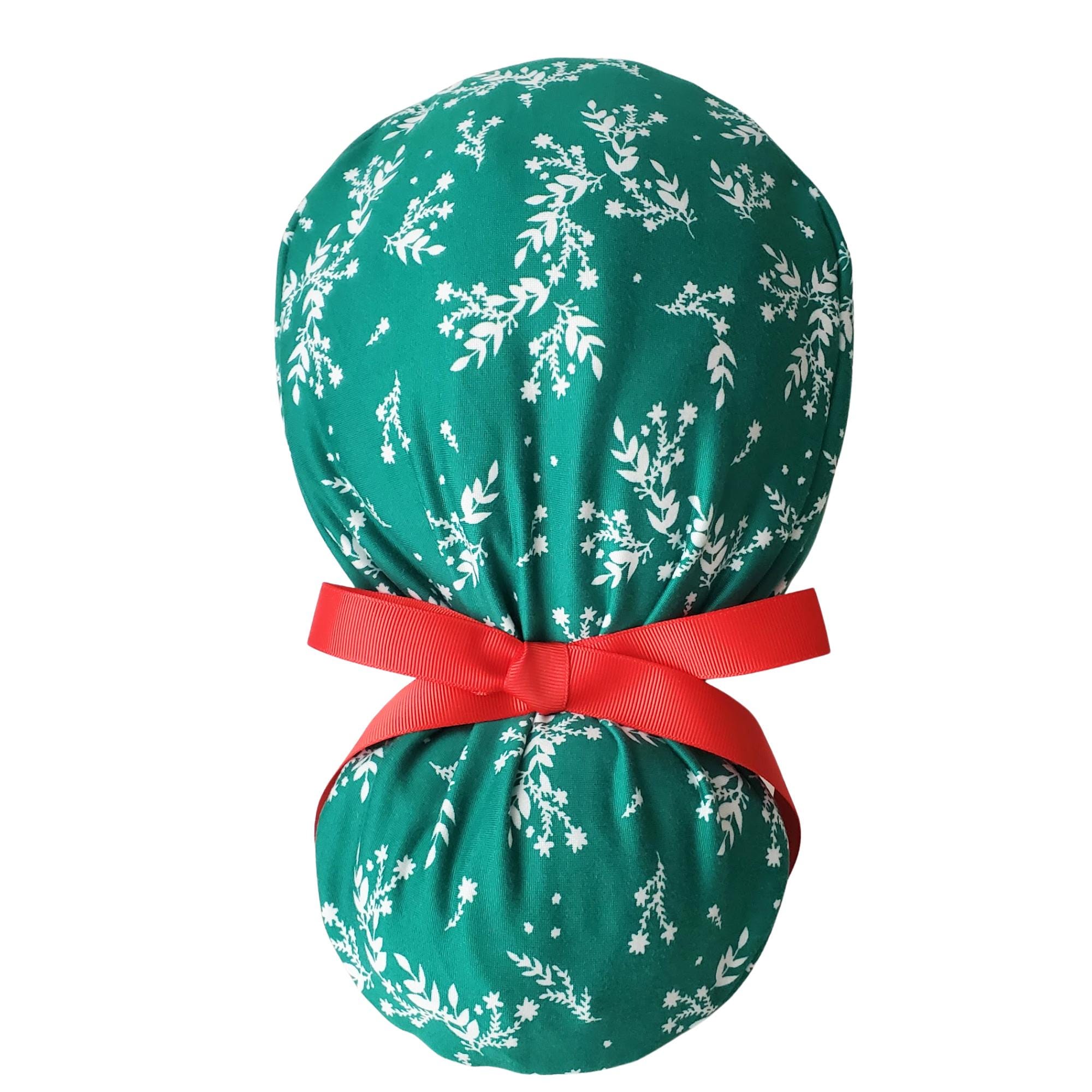 Designed for long hair, this style features a roomy ponytail pouch, adjustable toggle, and ribbon tie for a secure and polished finish. Perfect for nurses, healthcare staff, dental teams, vet techs, and anyone who loves to celebrate the season at work.