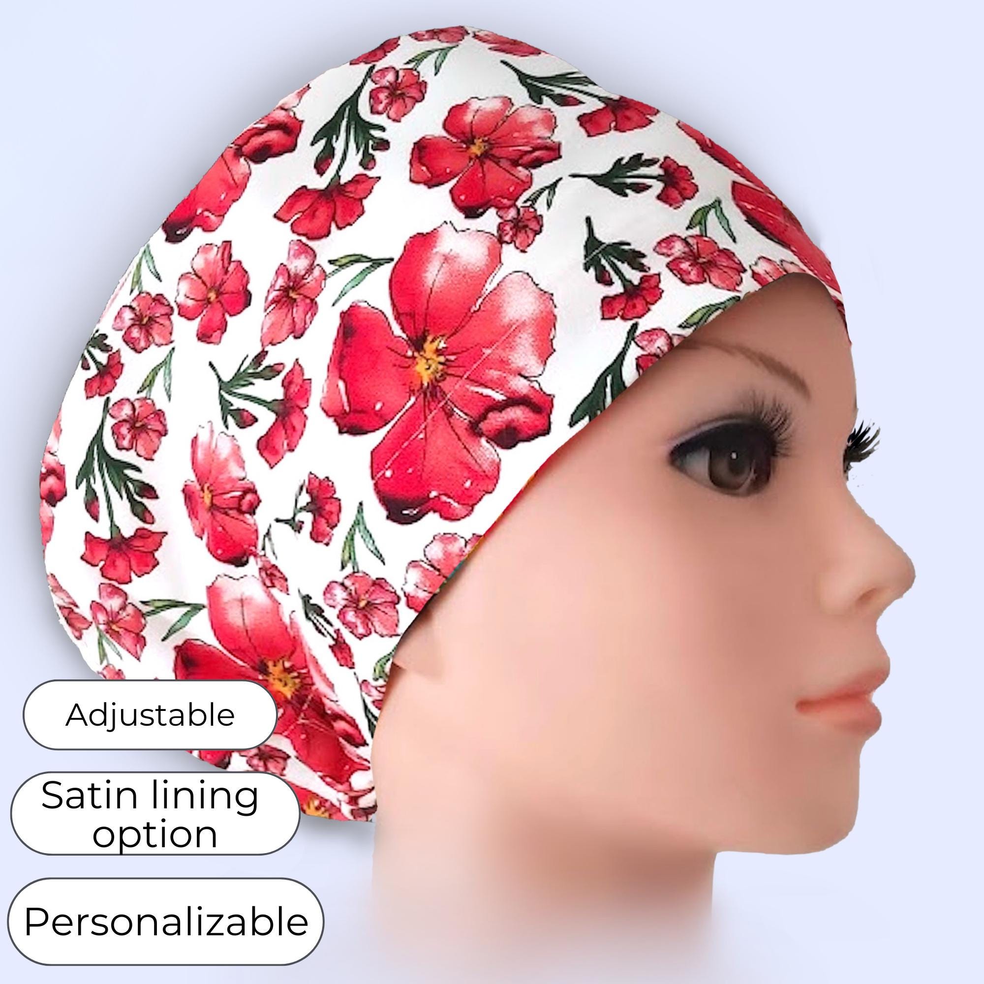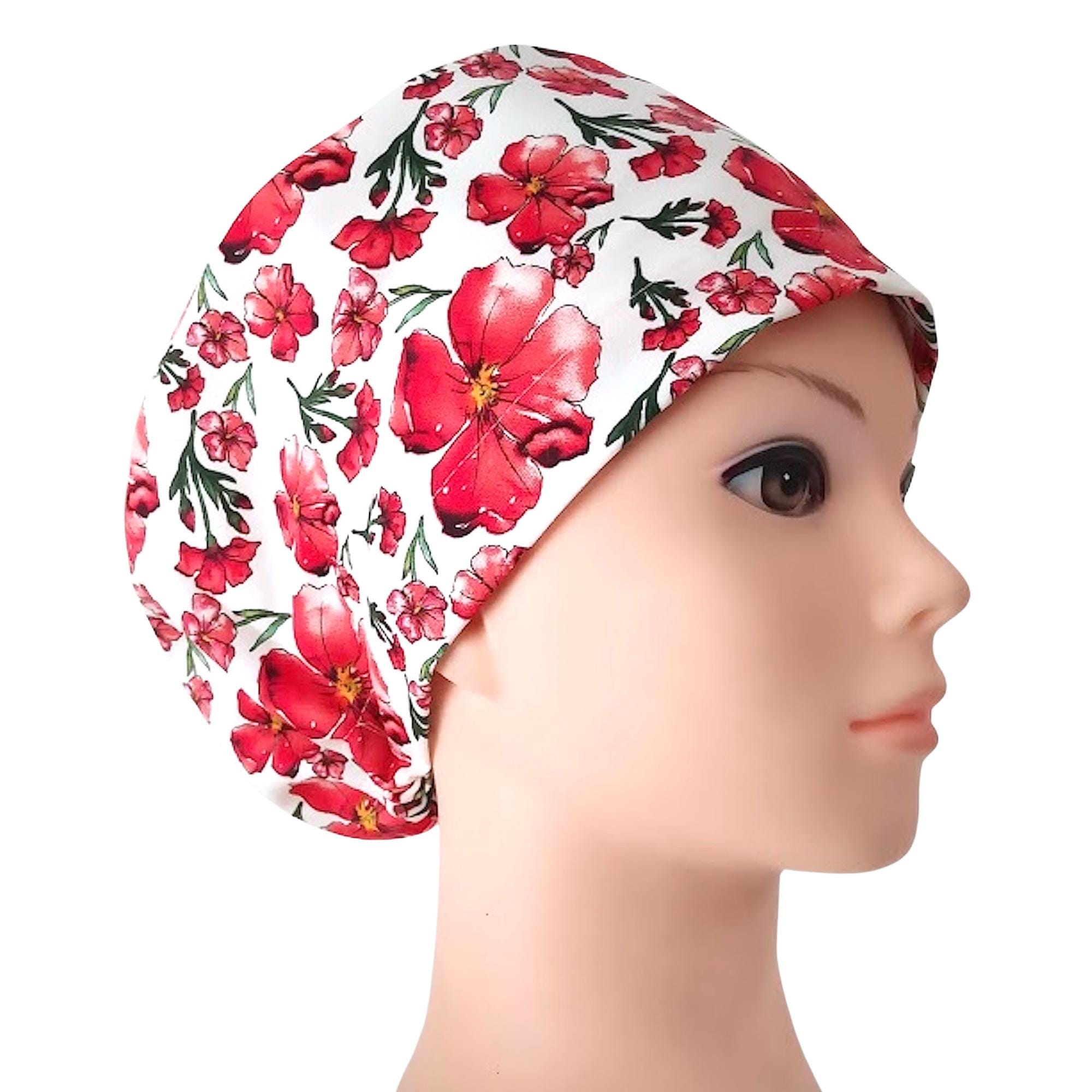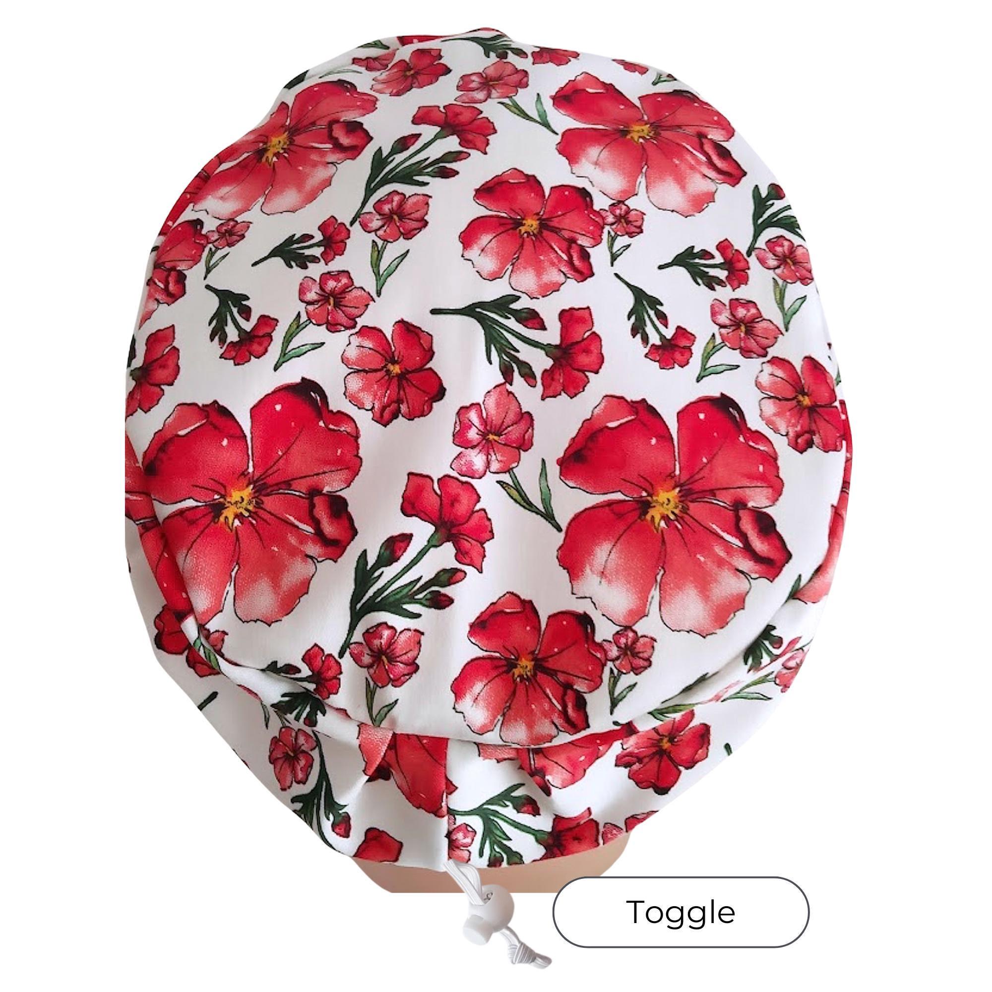 Add a bold, refreshing pop of color to your shift with this Red Floral Euro Scrub Cap. The vibrant floral print stands out beautifully against the white background, creating an eye-catching look while remaining professional for clinical settings.