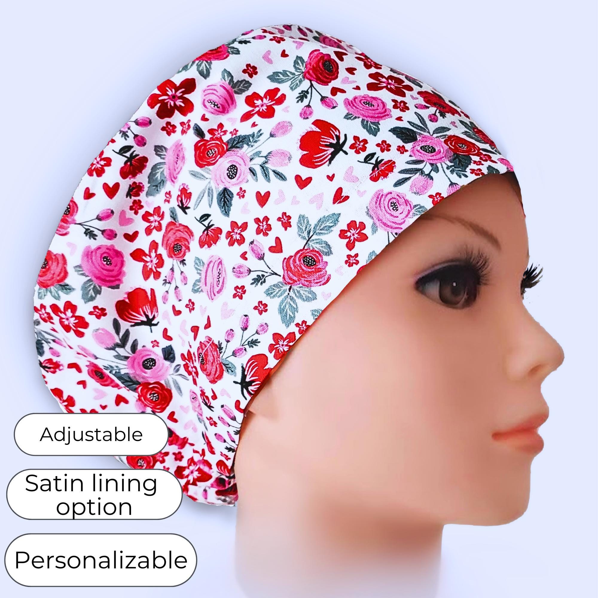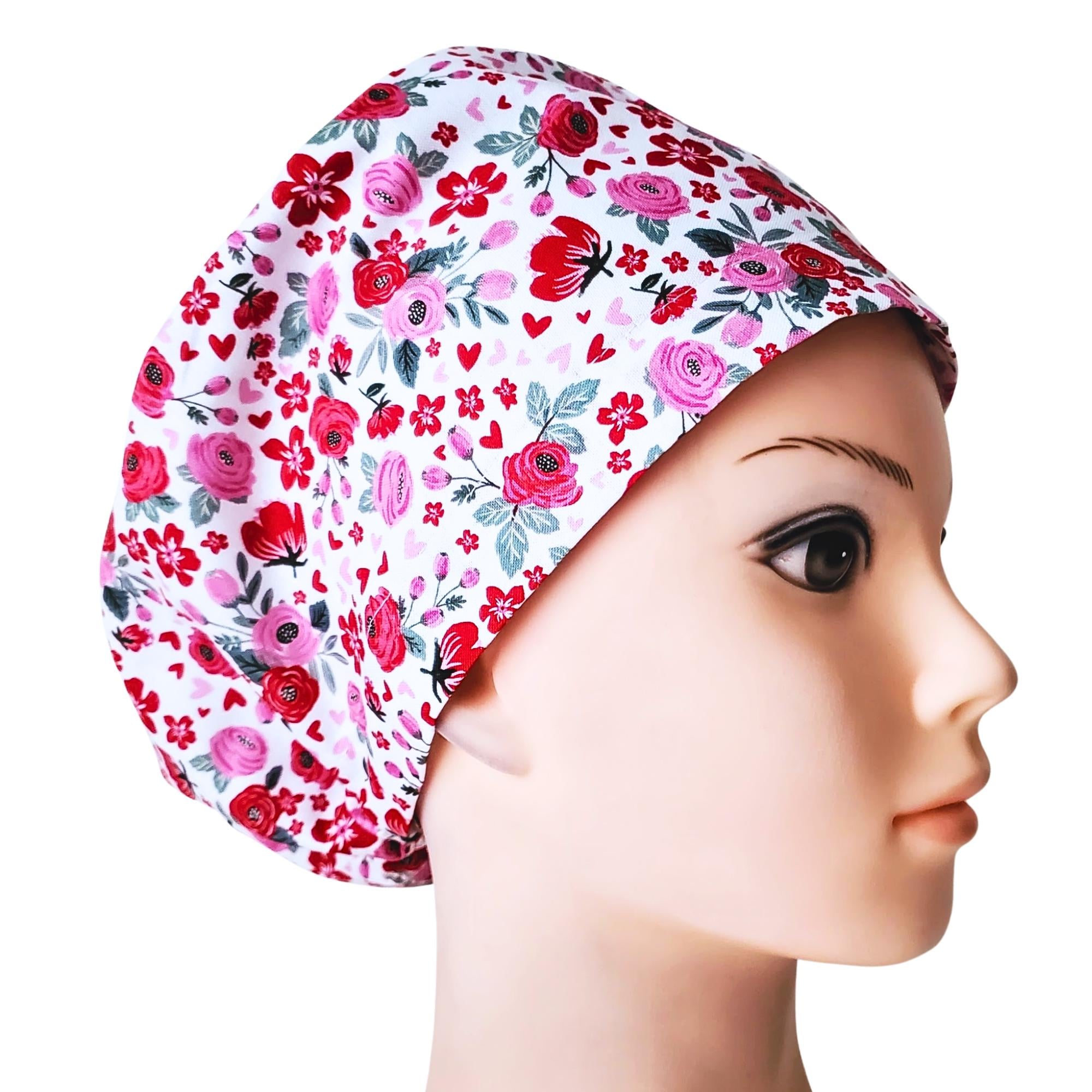 Pattern: This Valentine-inspired scrub cap features romantic floral roses paired with delicate heart details, creating a soft yet elegant look perfect for healthcare professionals who love a refined, feminine style.