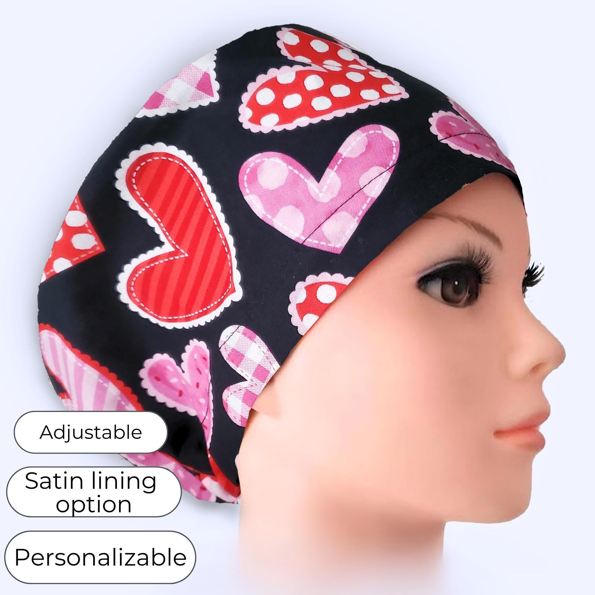 Discover the perfect blend of comfort and style with our euro style scrub cap, designed especially for healthcare professionals who value both practicality and charm. Featuring a delicate black heart pattern, this satin lined euro scrub cap adds a subtle touch of personality to your daily workwear. The adjustable fit ensures lasting comfort during long shifts, while the satin lining protects your hair from frizz and breakage.