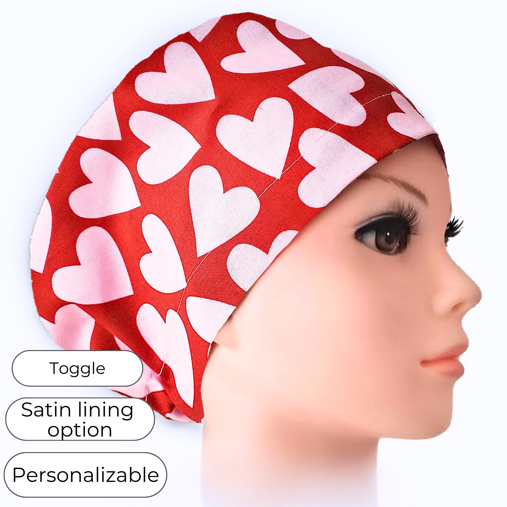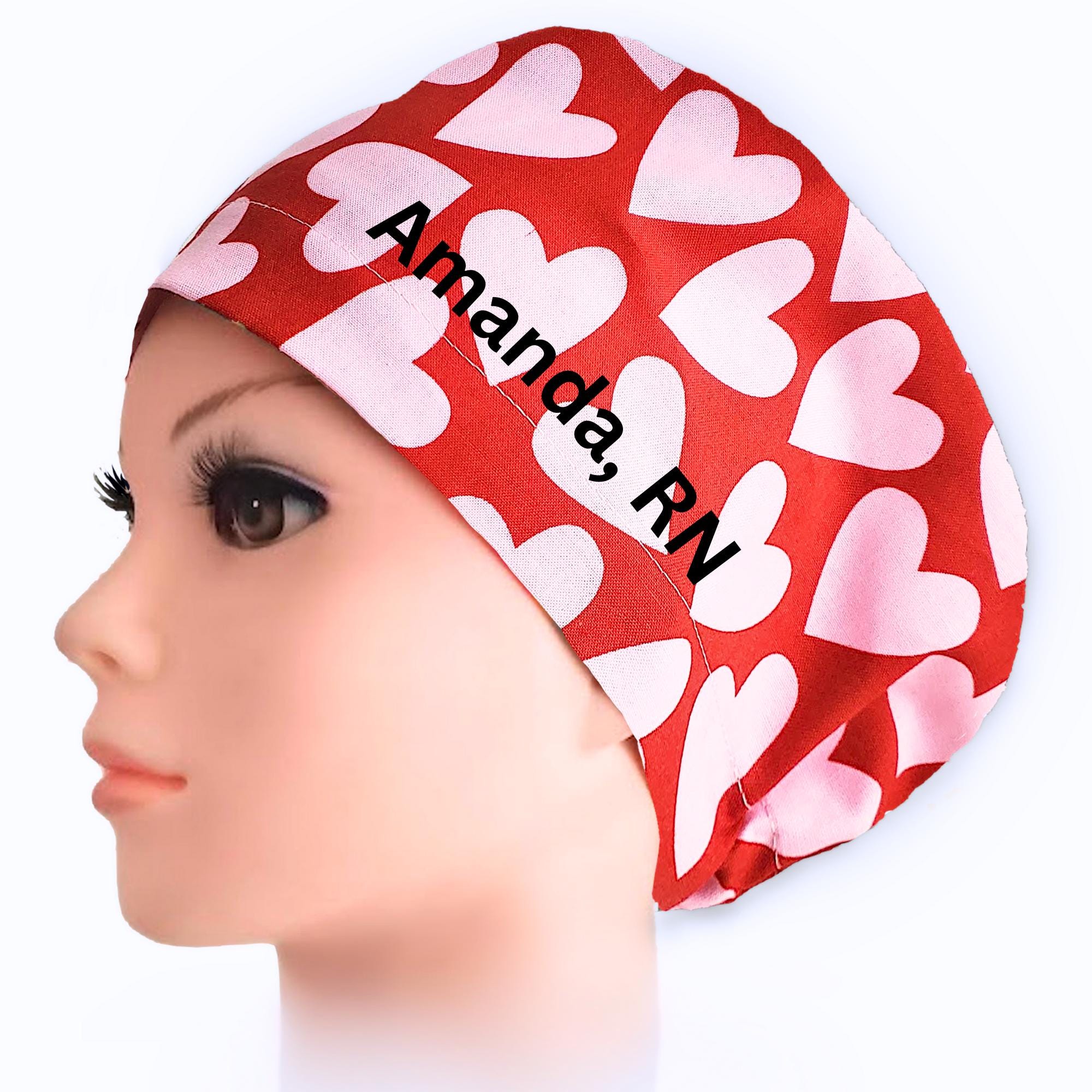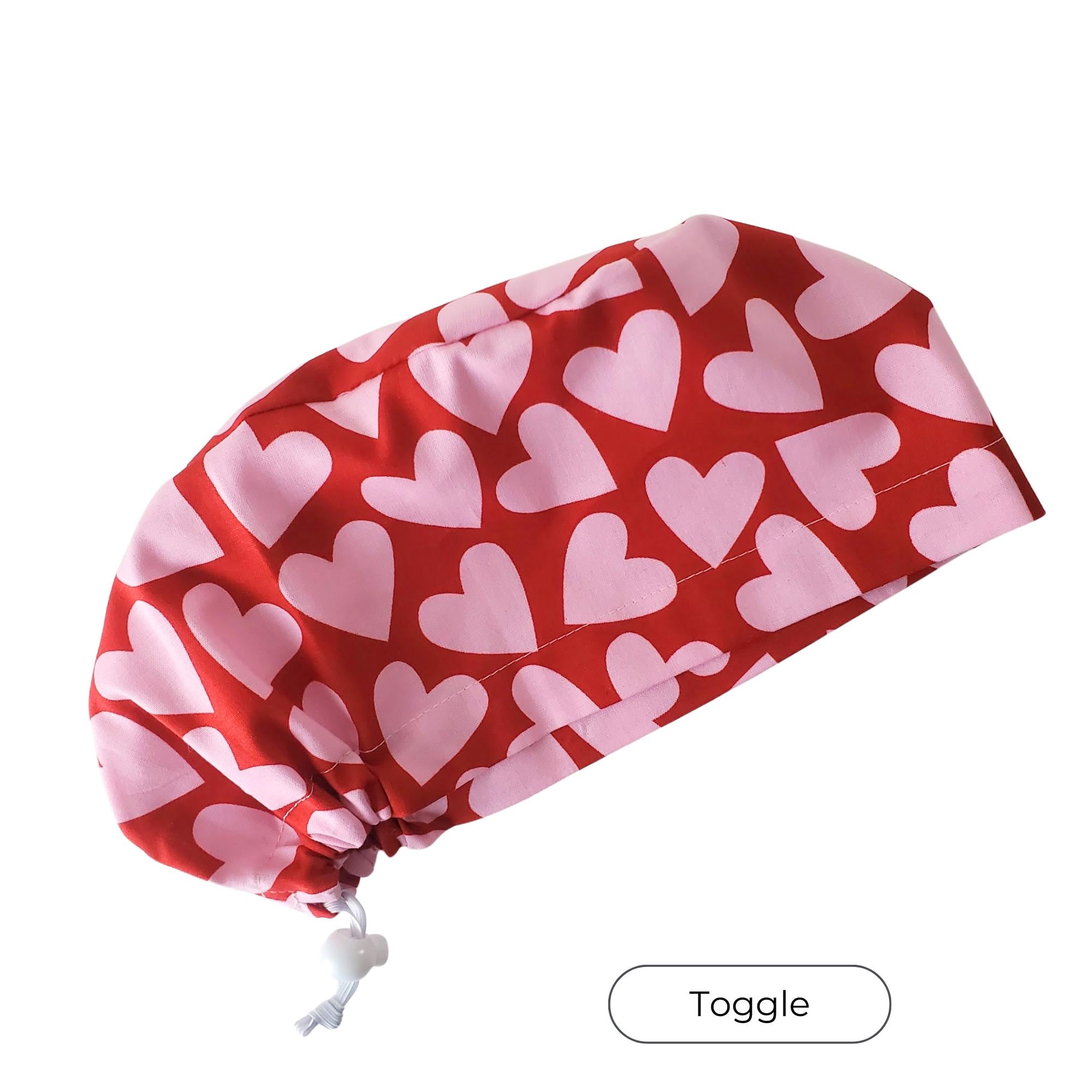 Step into your shift with warmth and confidence wearing this Euro style scrub cap, designed for healthcare professionals who value comfort, function, and a polished look. Featuring a bold red background with soft pink heart accents, this scrub hat adds a subtle Valentine-inspired touch while remaining professional and easy to style year-round.