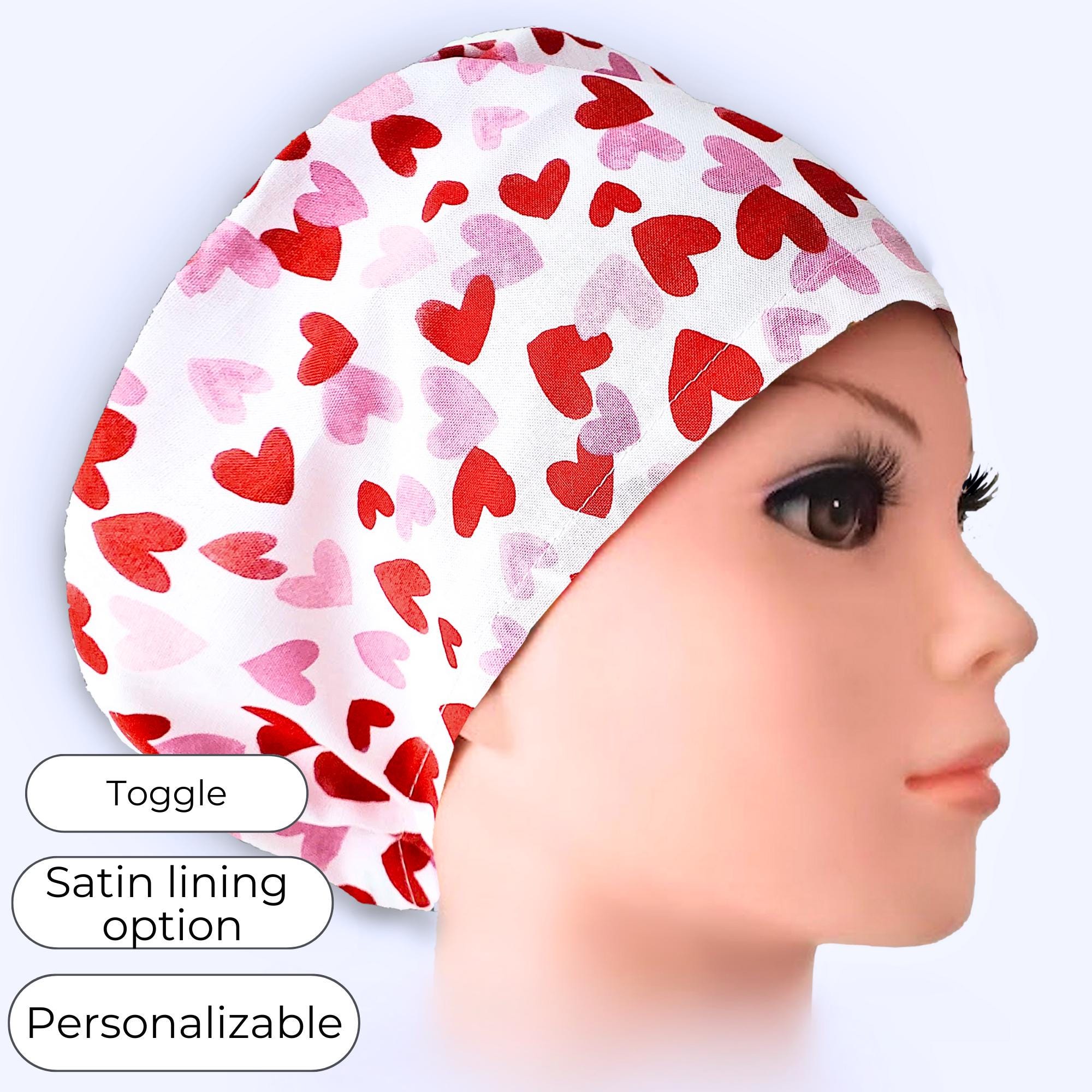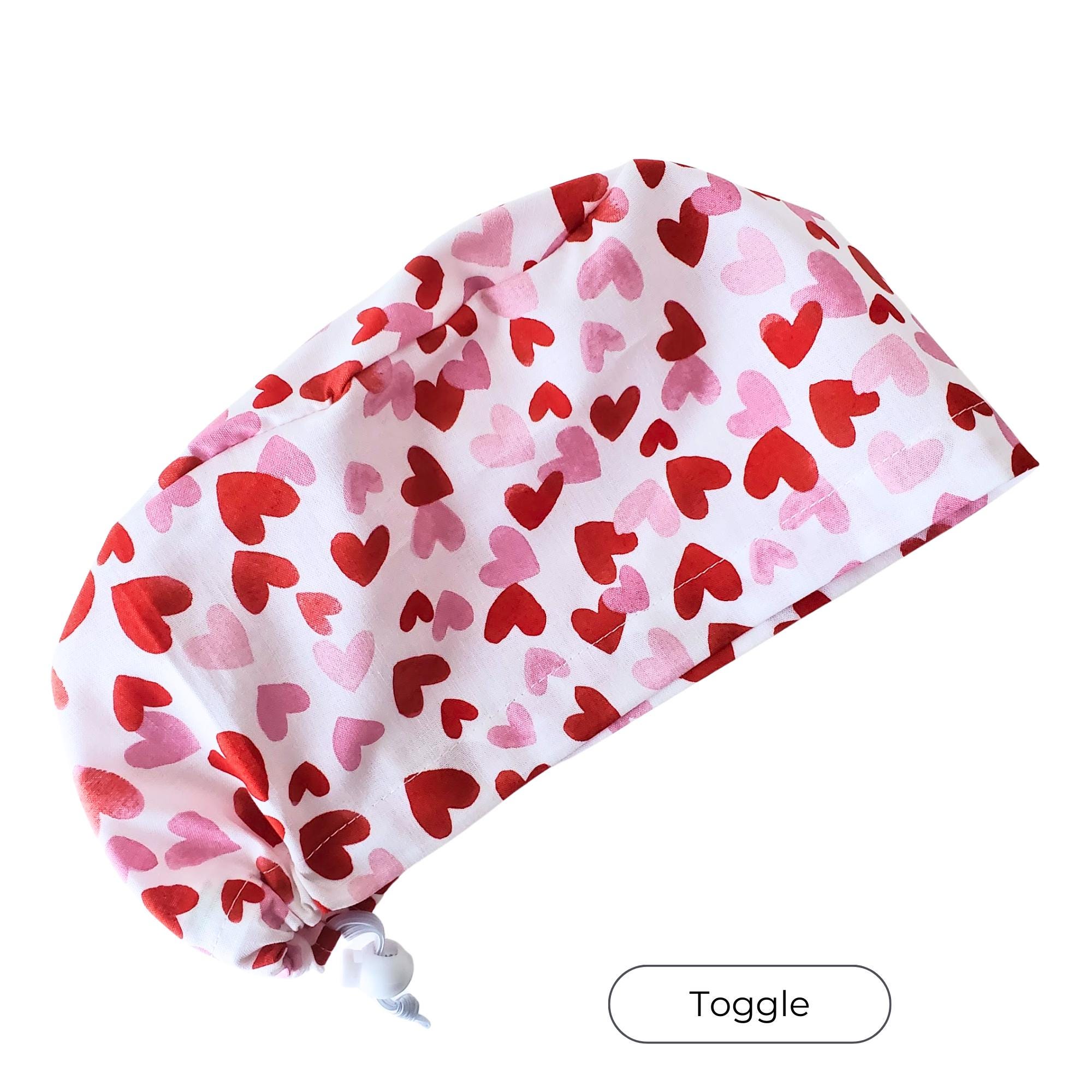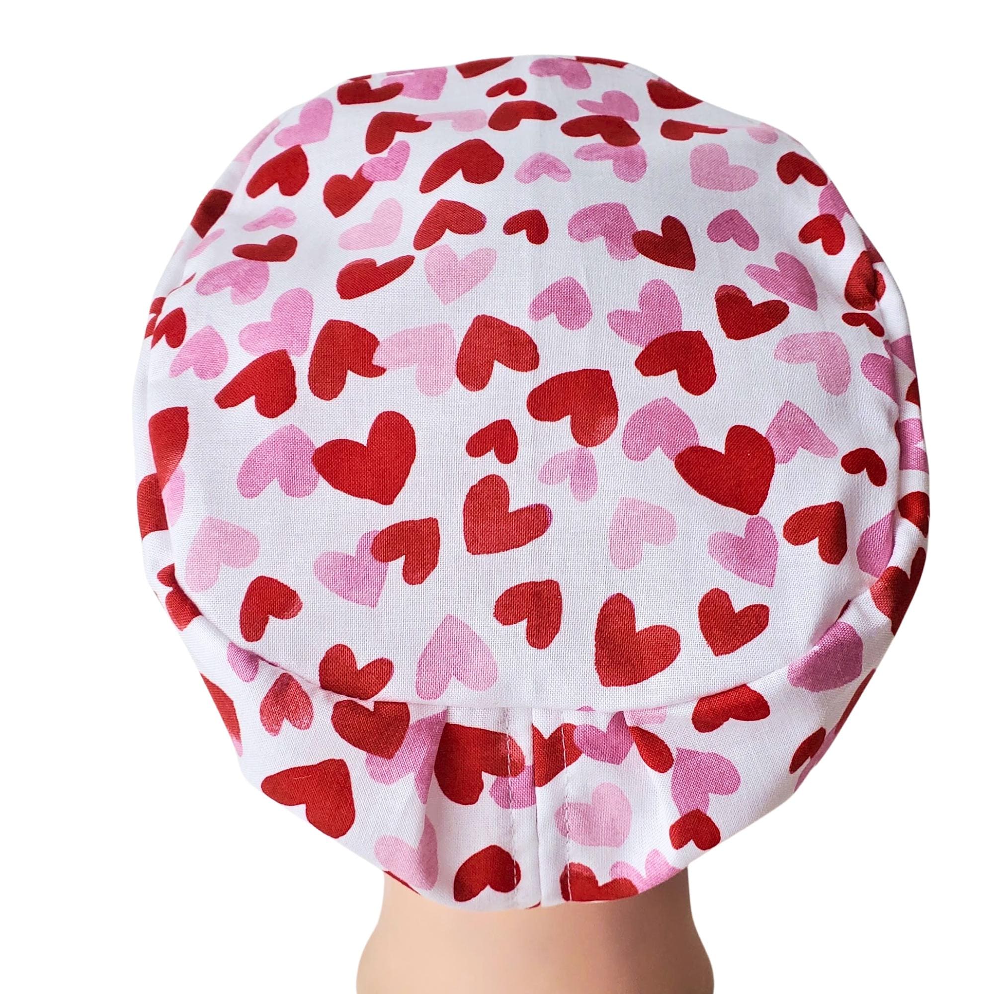 Add comfort and subtle Valentine charm to your workday with this heart print Euro style scrub cap, designed for healthcare professionals who value a clean, tailored fit with personality. The red and pink heart pattern on a light background creates a warm, cheerful look while remaining professional and easy to pair with any uniform.