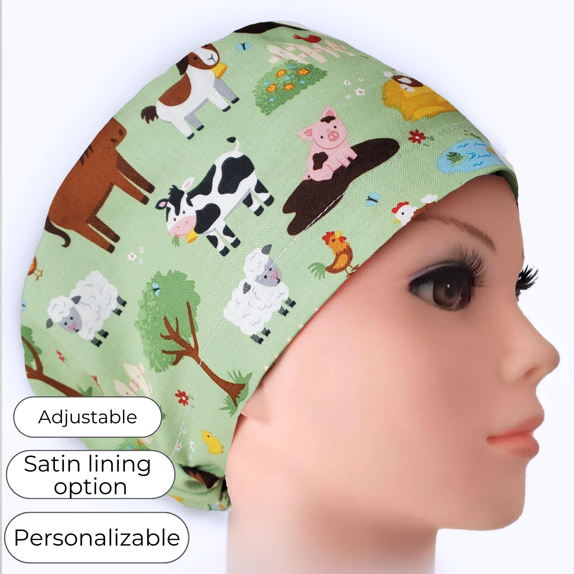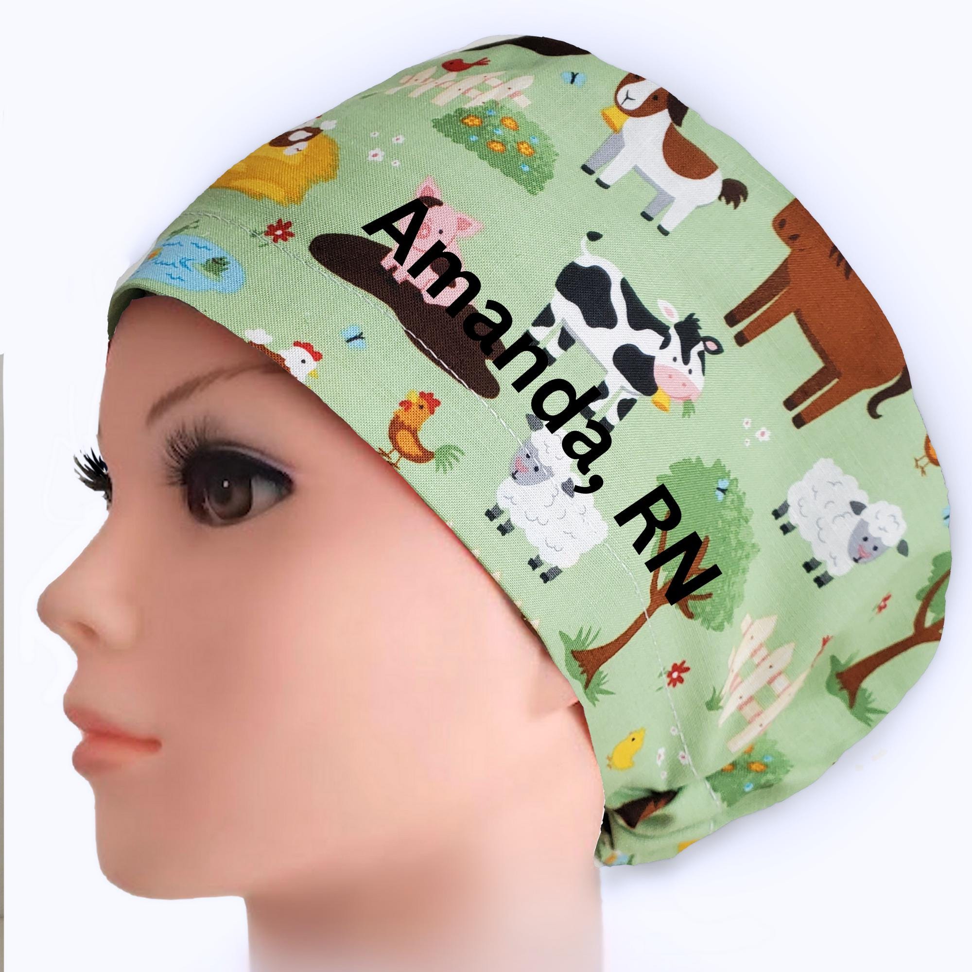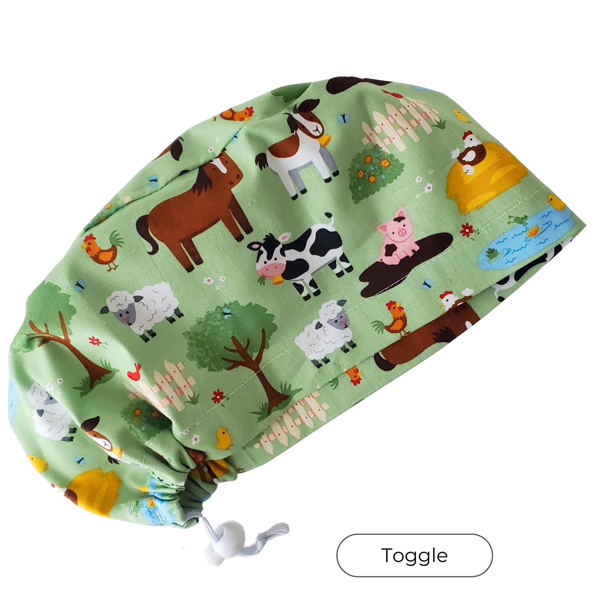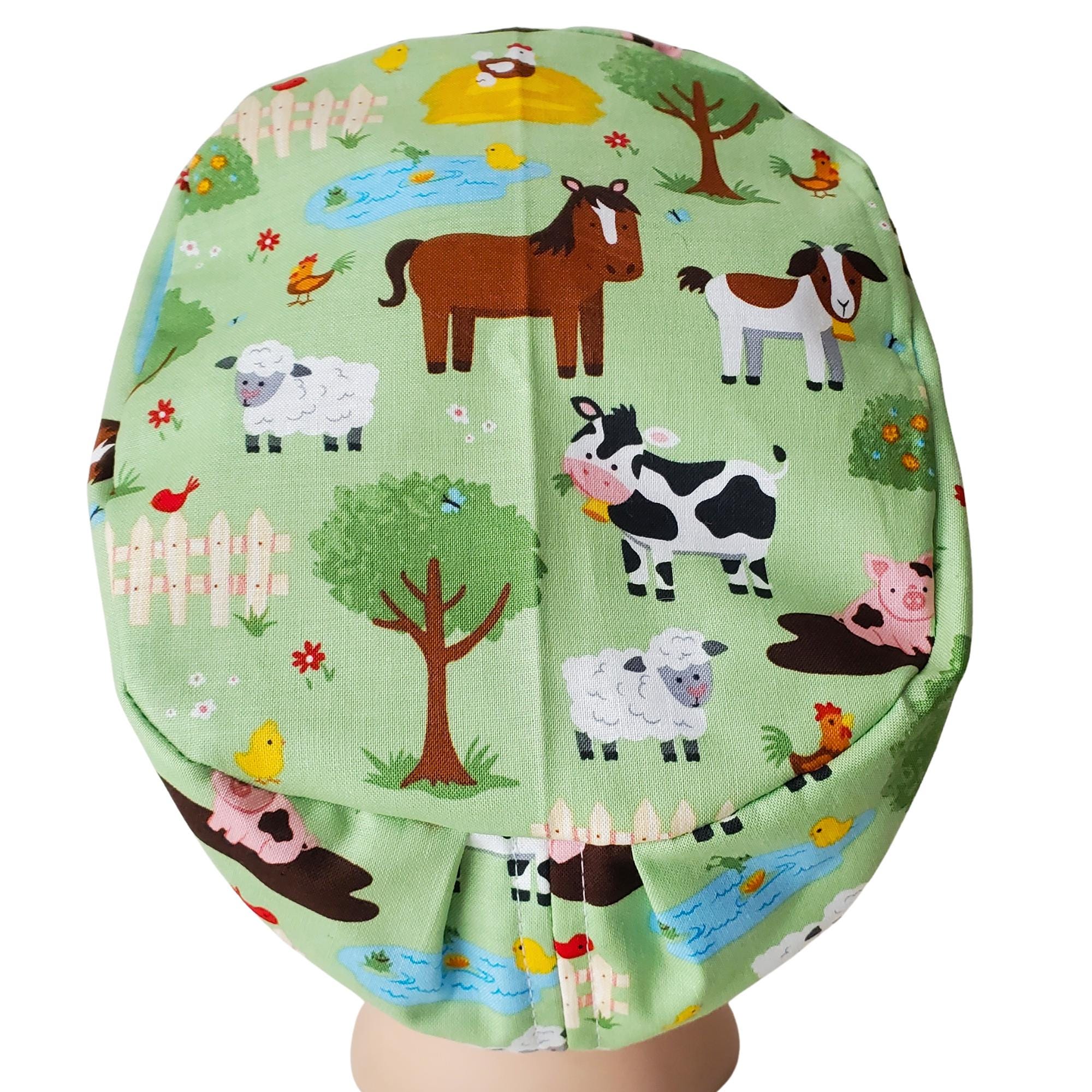 This farm animal euro scrub cap is designed for nurses and healthcare professionals who want dependable comfort with a friendly, playful touch. The soft green background features cheerful farm animals, making it a great choice for pediatric settings, clinics, and anyone who enjoys a lighthearted yet professional look.