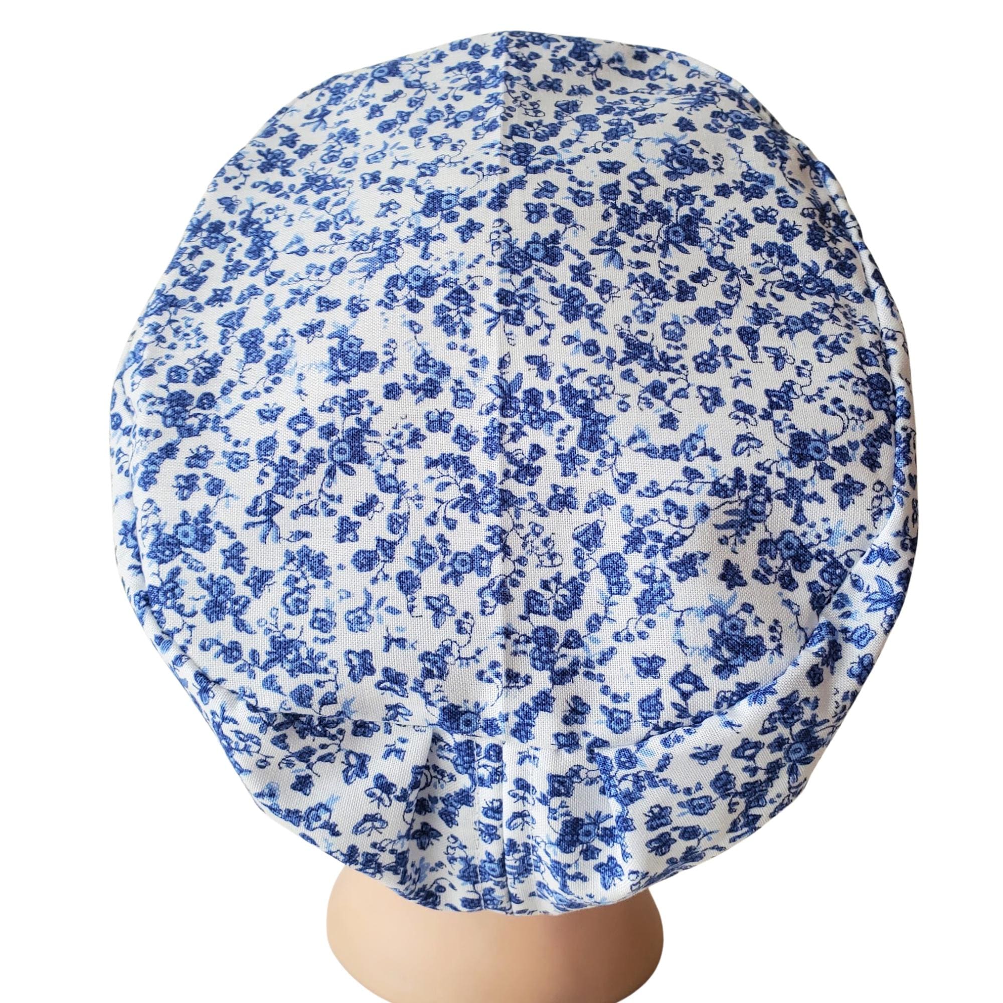 Add a light, cheerful touch to your workday with this euro scrub cap, designed for nurses and healthcare professionals who want comfort, function, and subtle seasonal style. The playful navy flowers on a soft white background brings a fresh spring feel while remaining work-appropriate for clinical settings.