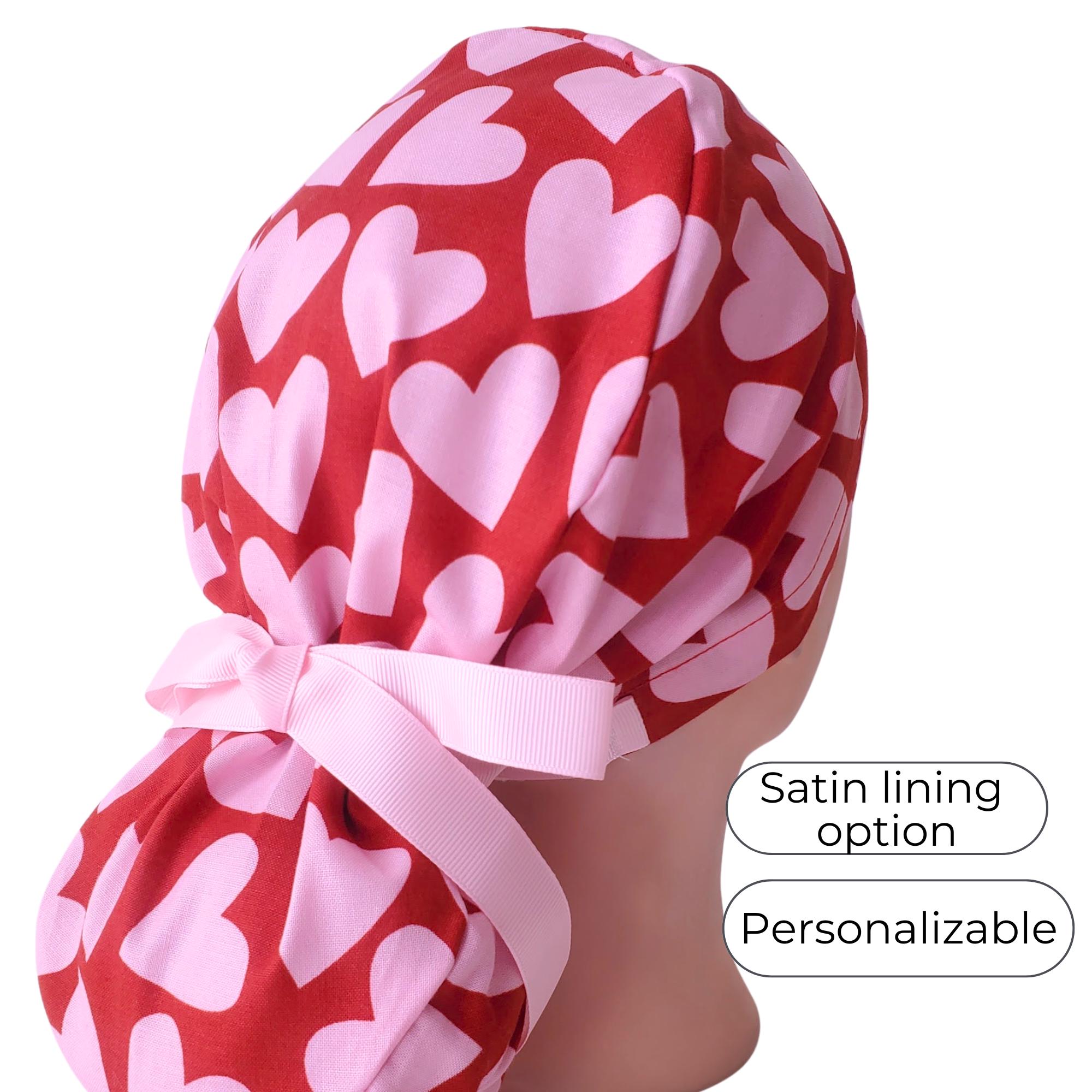 Nurses and healthcare professionals often seek scrub caps that blend comfort with personality, especially during long shifts. This heart ponytail scrub cap offers a cheerful Valentine-inspired design featuring a red and pink heart print, perfect for adding a touch of warmth to your clinical wardrobe. Crafted with breathable cotton and an adjustable tie-back, it embraces the needs of those requiring extra room for long or thick hair without compromising professionalism.