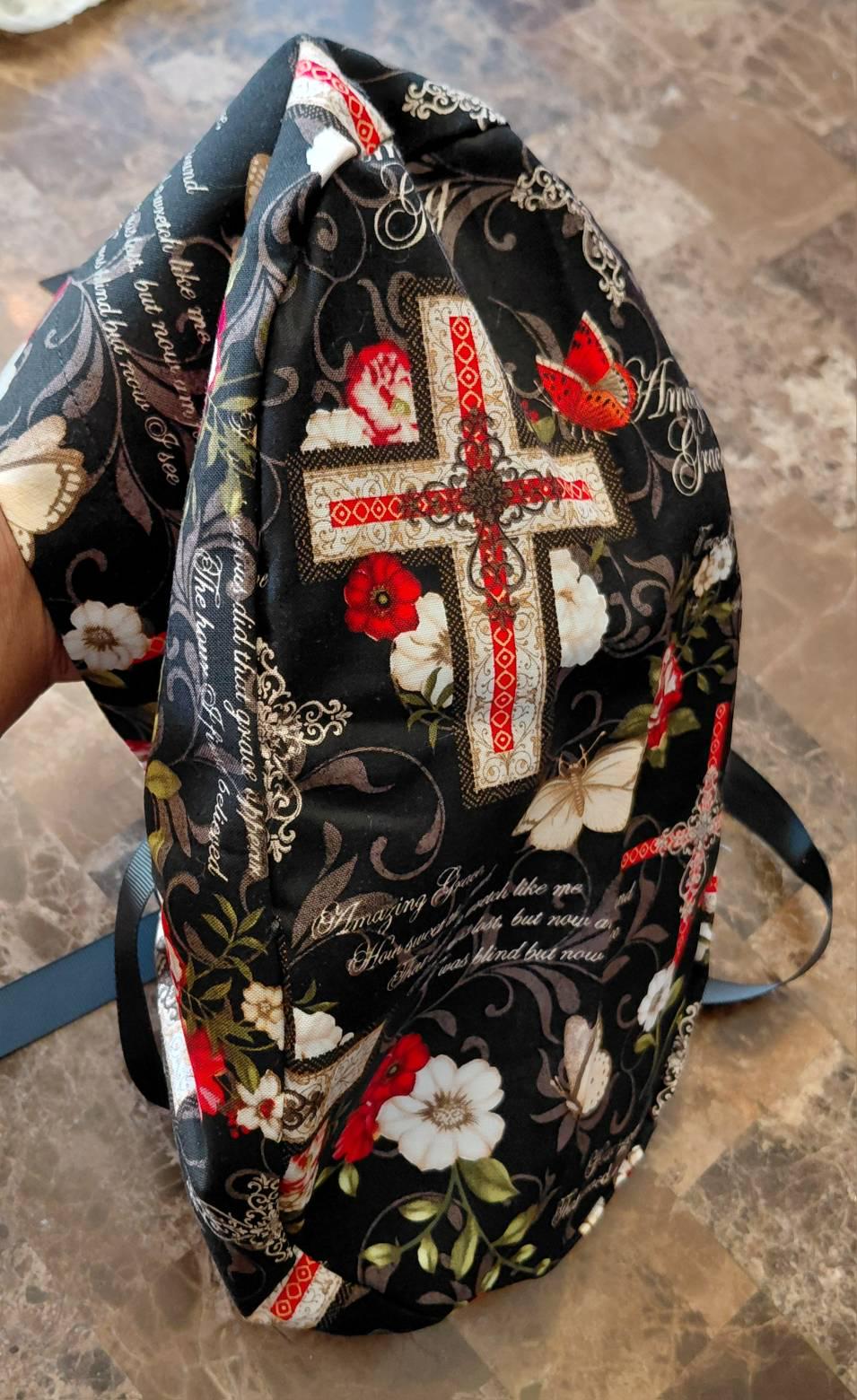 Add elegance and comfort to your workday with this beautifully designed ponytail scrub cap featuring a striking cross and script print. Perfect for healthcare professionals who appreciate meaningful style combined with practical function.