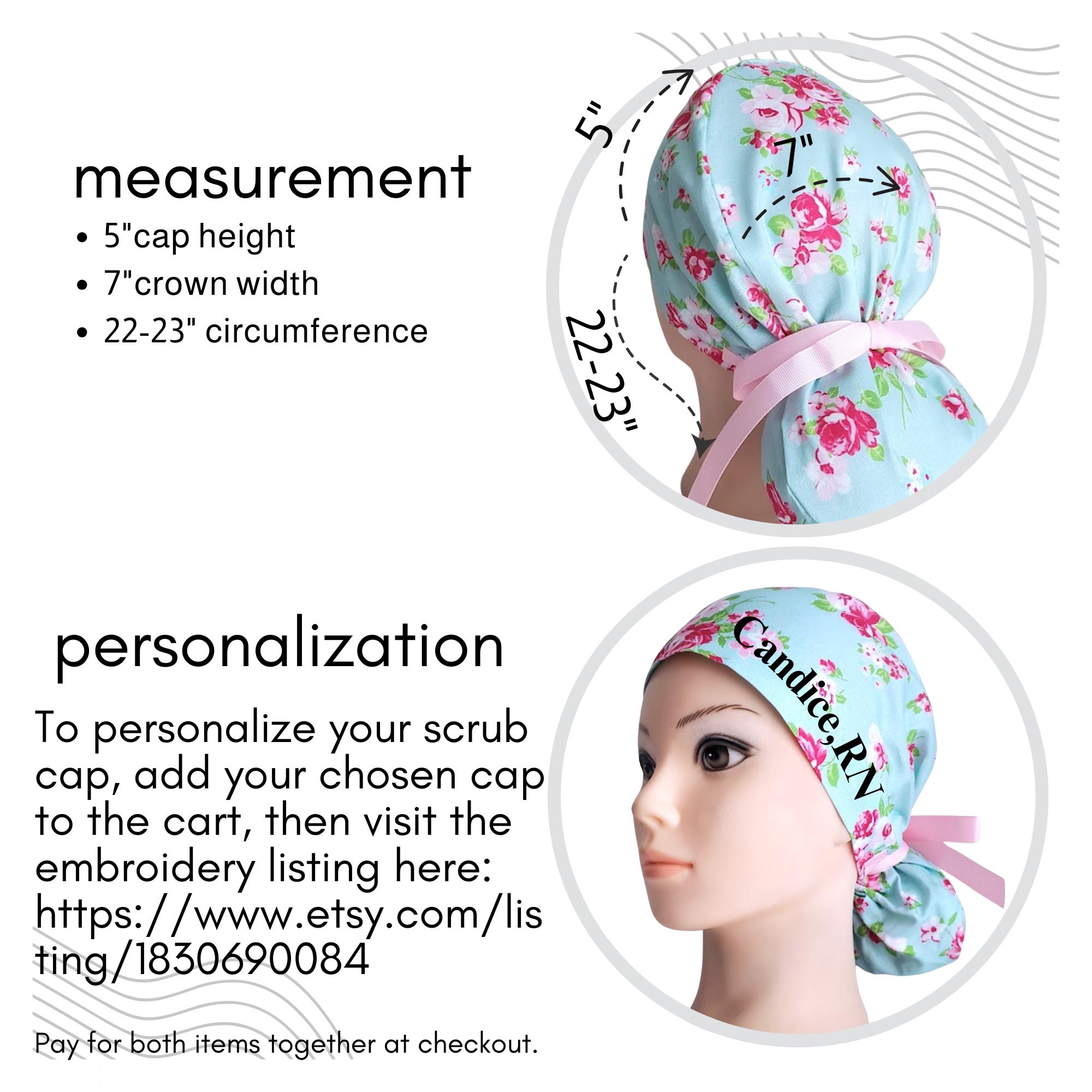 โ Ponytail scrub cap designed for long or thick hair