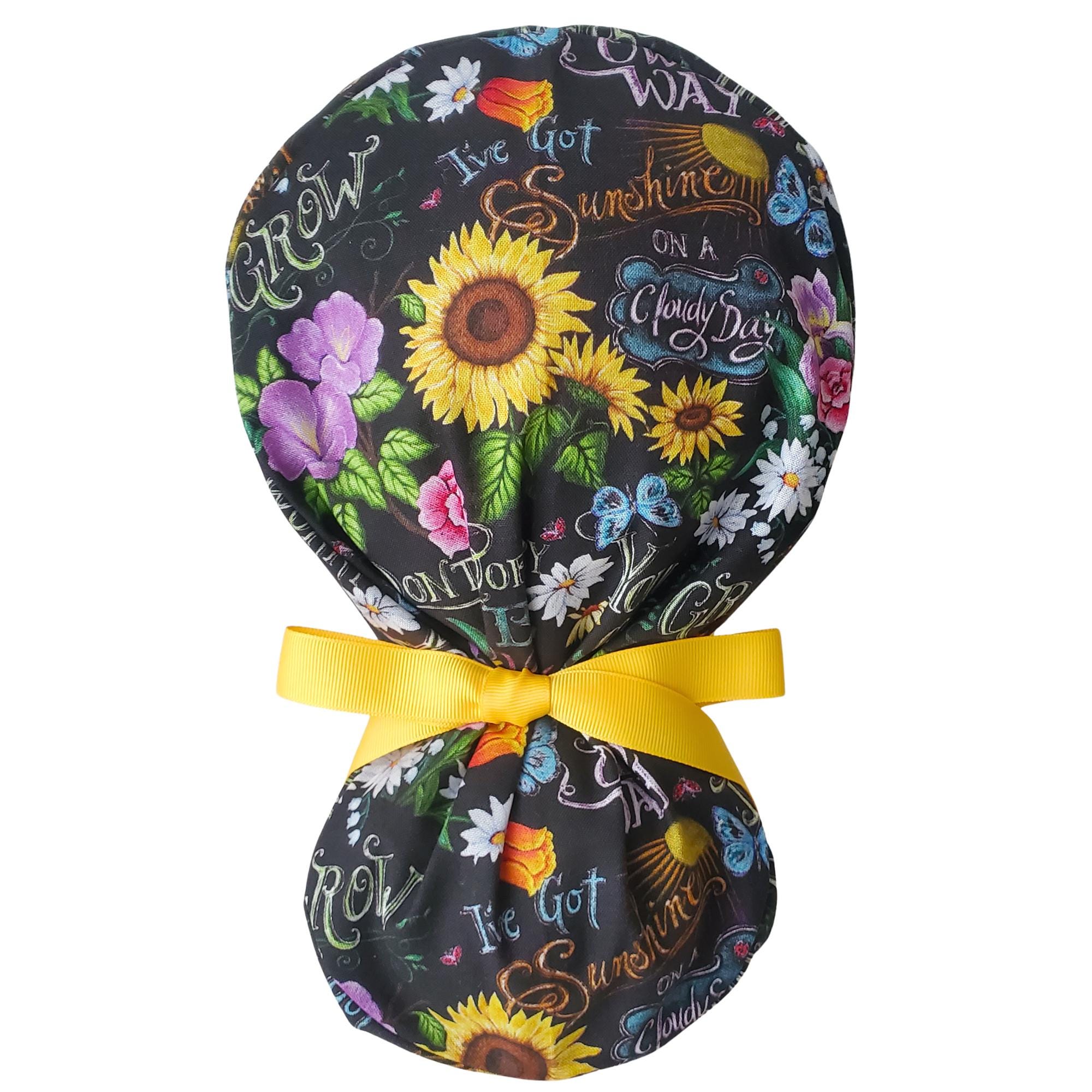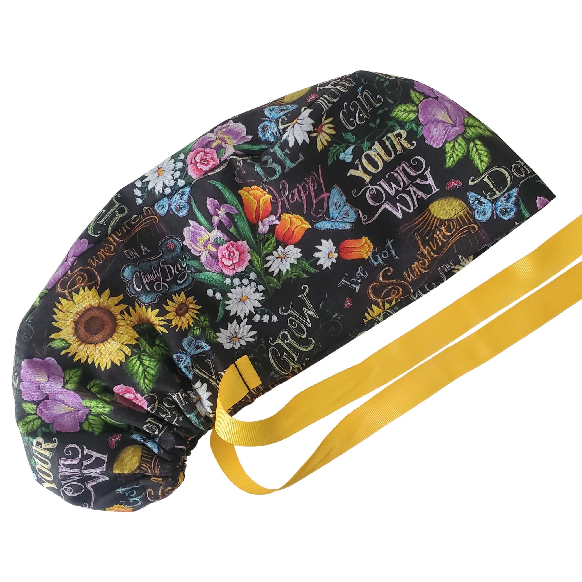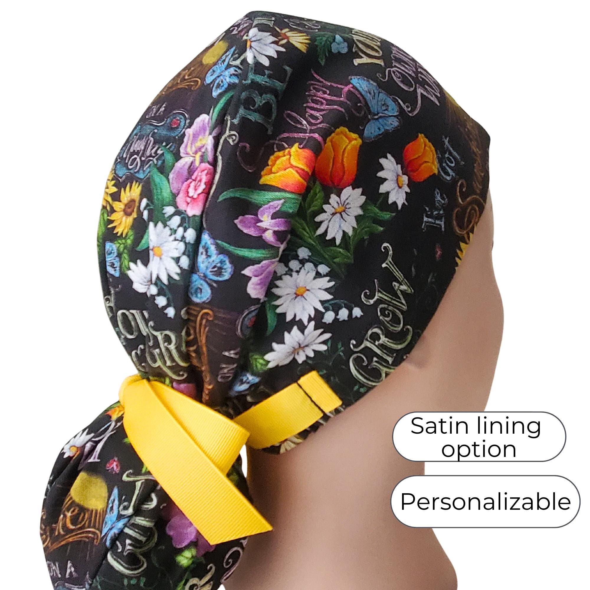 Add elegance and comfort to your workday with this beautifully designed ponytail scrub cap featuring a floral print on black. Perfect for healthcare professionals who appreciate meaningful style combined with practical function.
