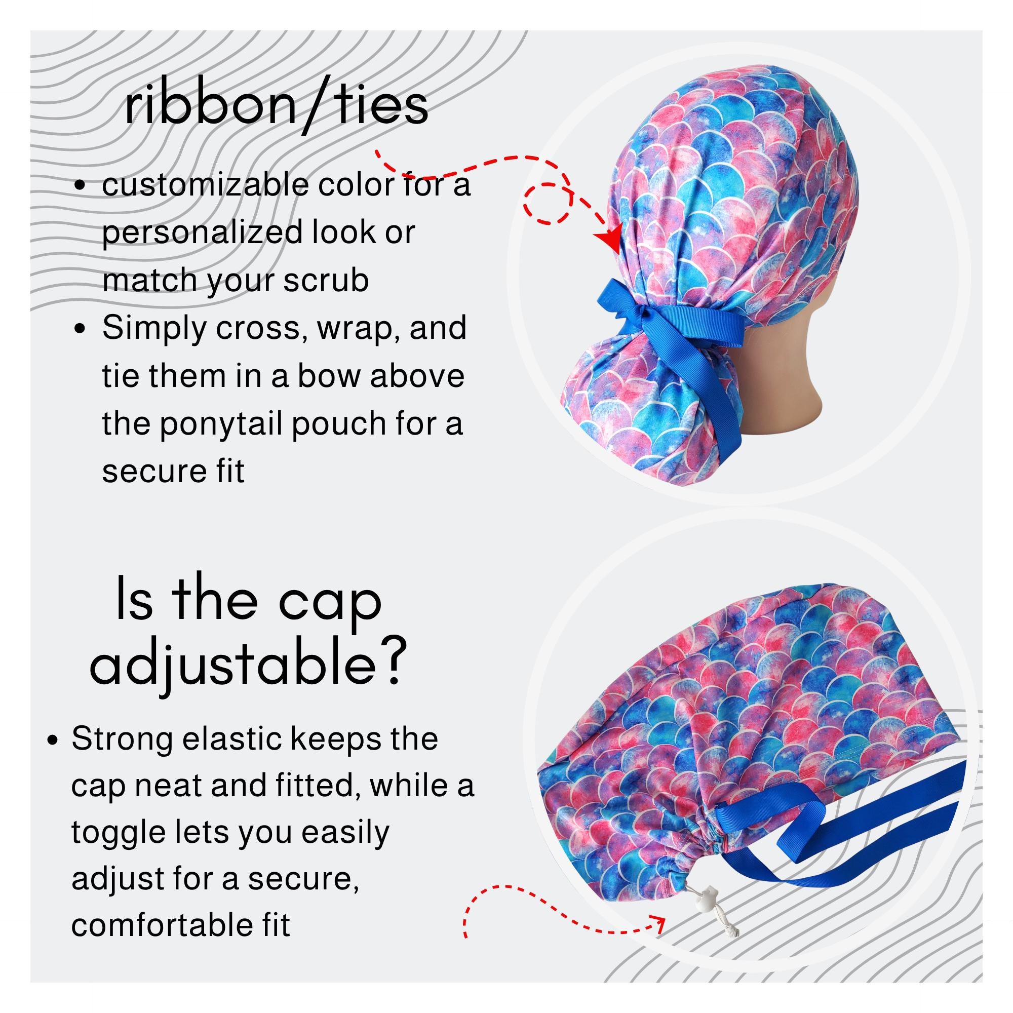 Stay comfortable and stylish during long shifts with this stretchy ponytail scrub cap, designed for all-day wear and a secure fit.