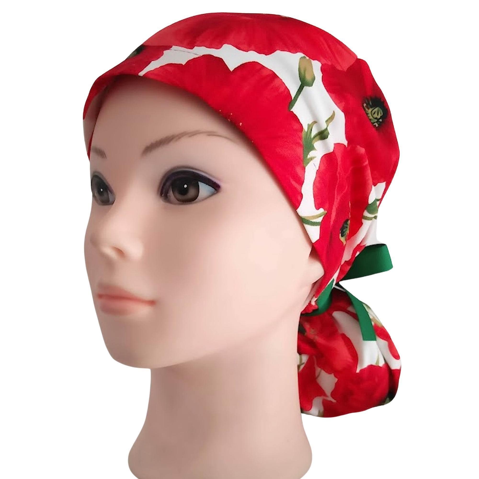 This ponytail scrub cap with satin lining option is handmade from soft, breathable cotton for all-day comfort. Designed as a practical yet stylish scrub cap for women, it features a Floral print with a secure elastic back and ribbon ties that keep long hair neatly in place. This scrub hat is ideal for everyday wear in the operating room, clinic, or hospital.