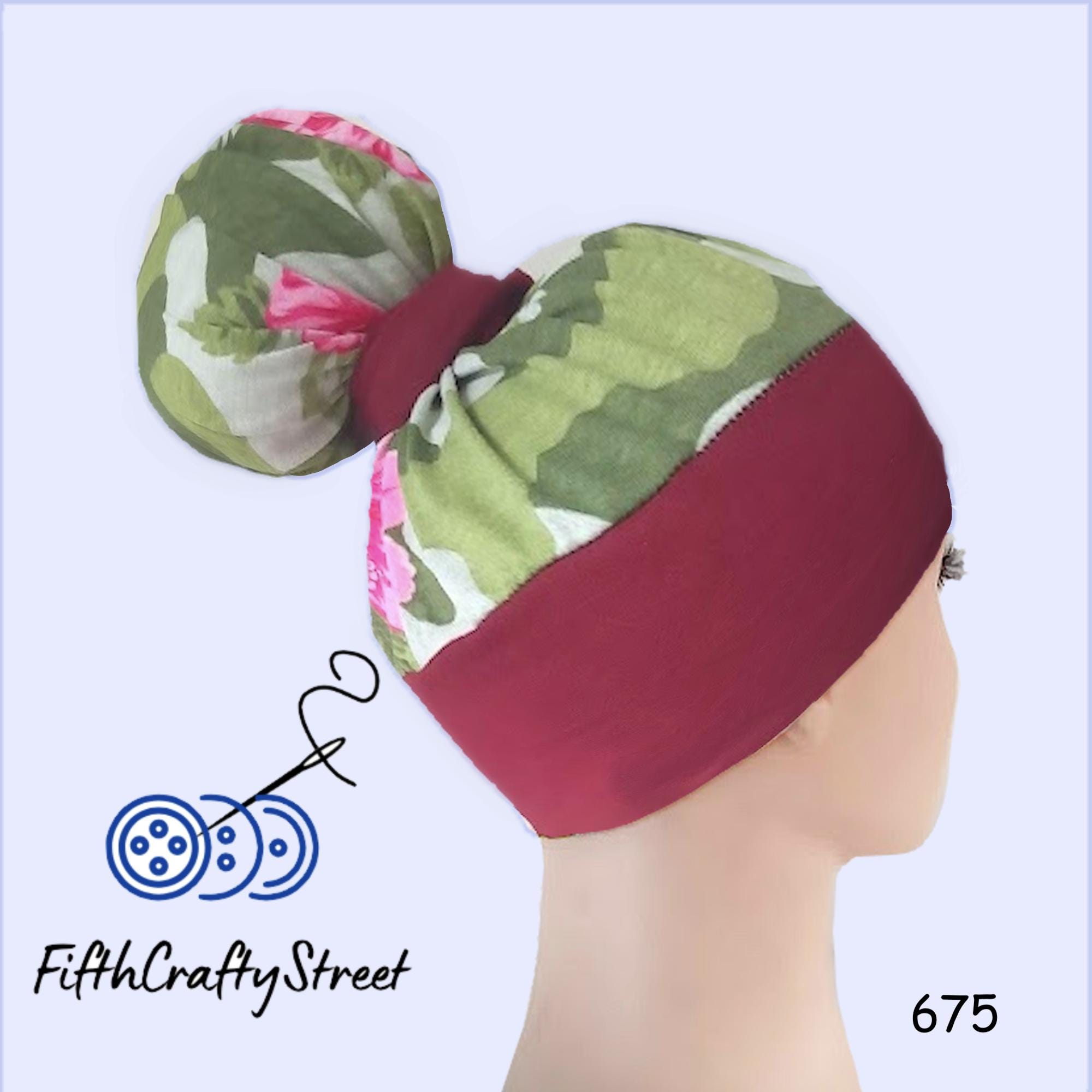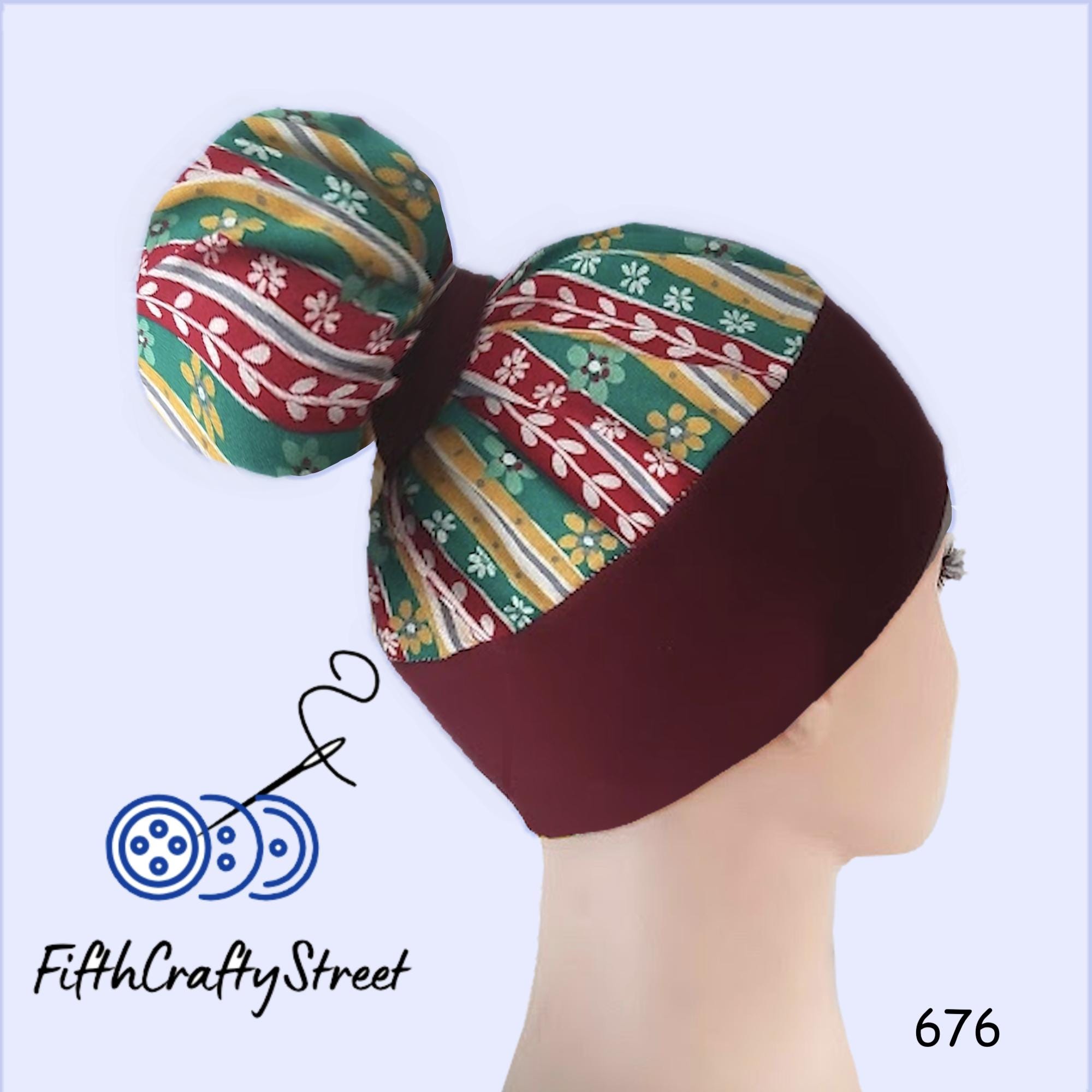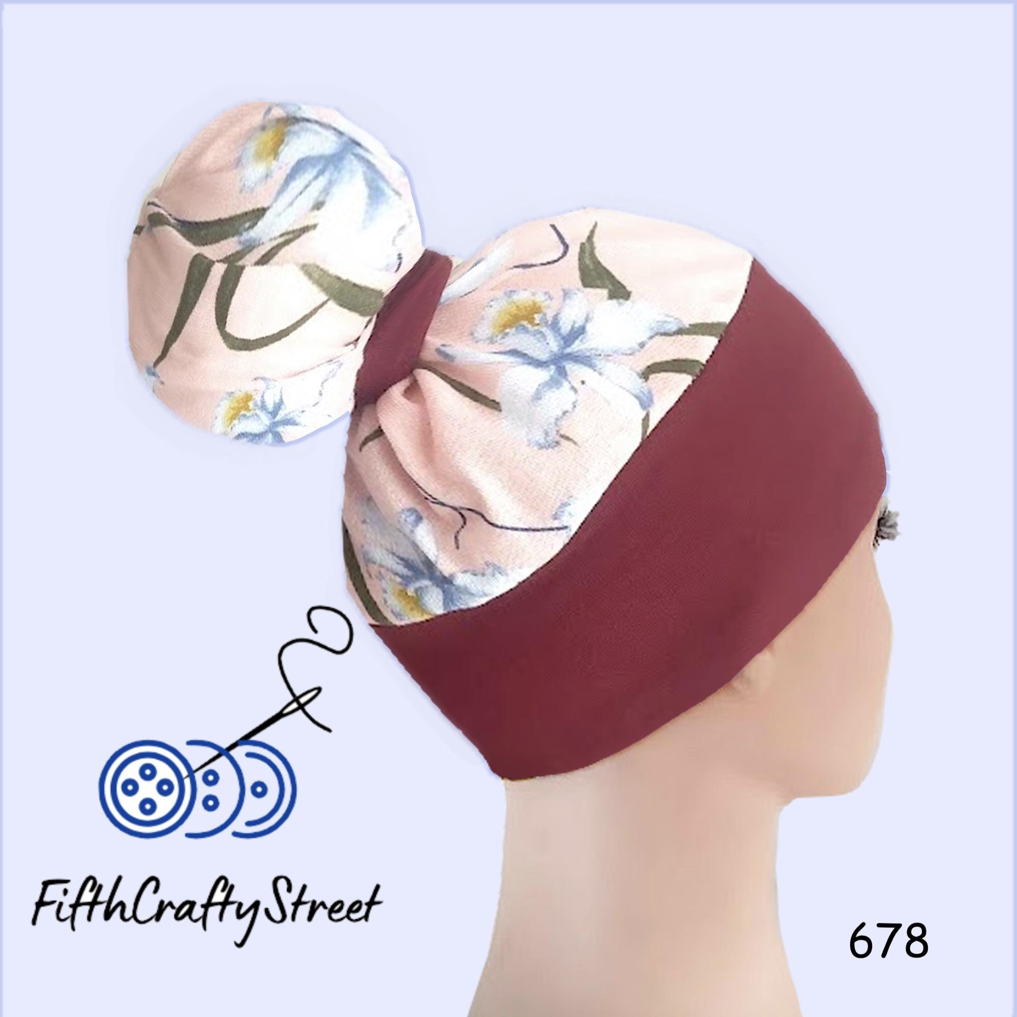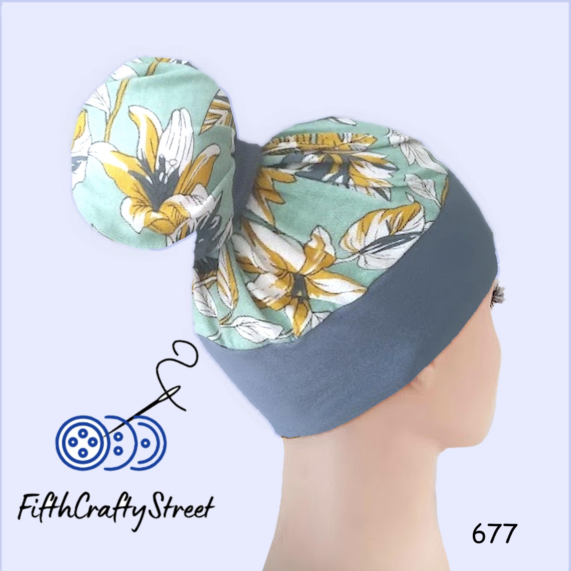 high bun scrub cap, surgical scrub hat ponytail made by me from high-quality fabrics.
