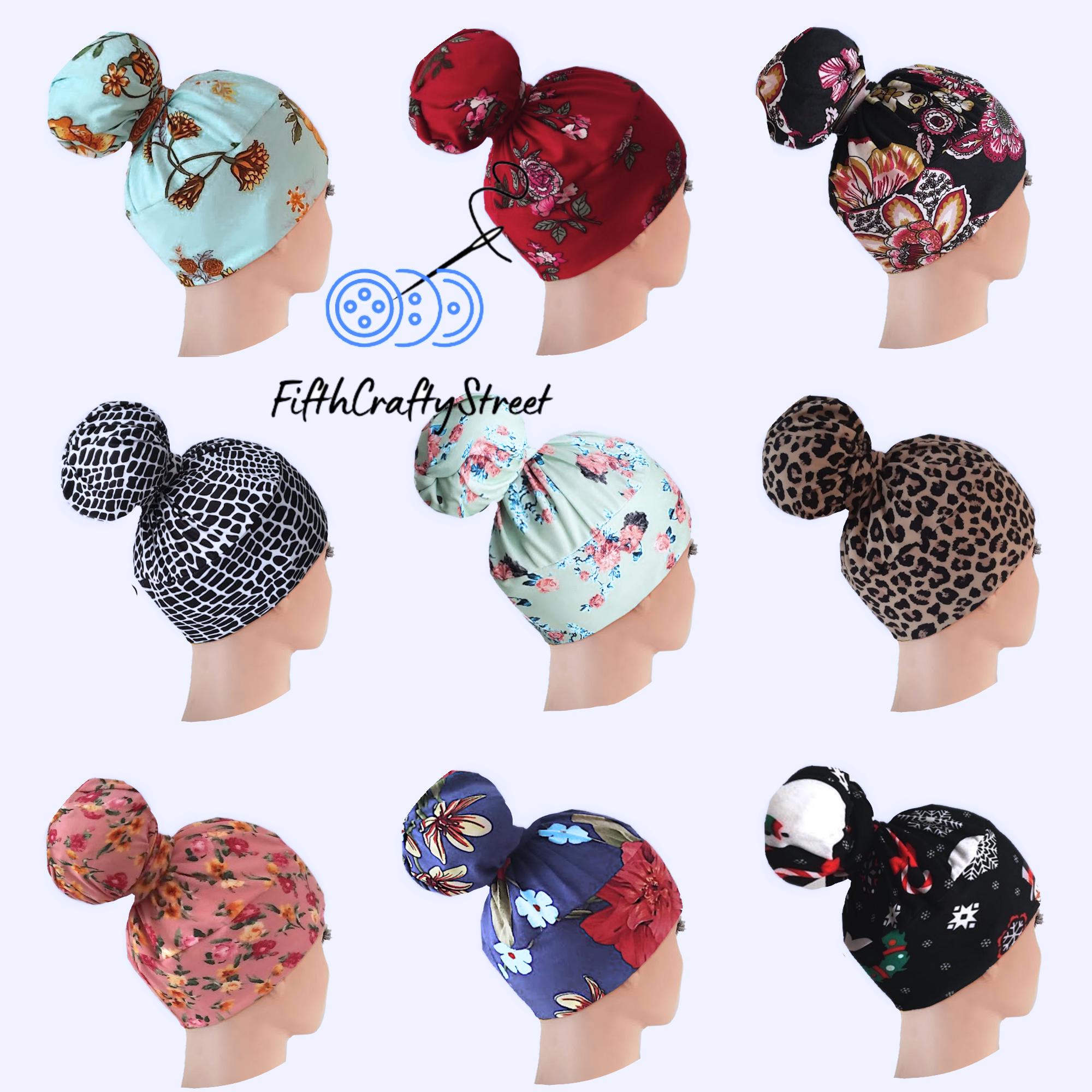 High Bun Scrub Cap, surgical scrub hat ponytail made by me from high-quality fabrics.
