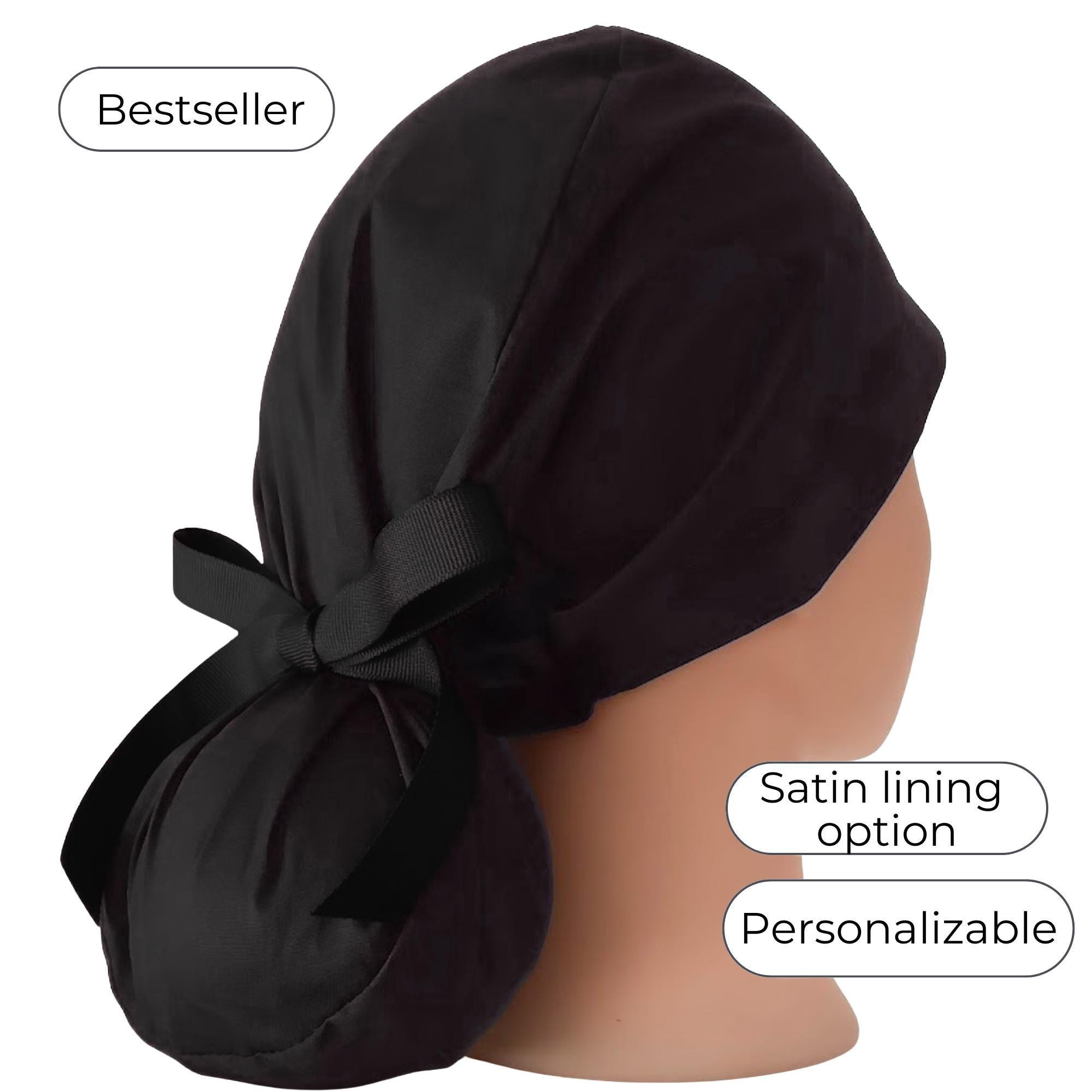Our ponytail scrub cap is designed with both comfort and style in mind, perfect for long hair and long shifts. Each cap is handmade from high-quality cotton, making it soft, breathable, and comfortable to wear all day. The back features a secure elastic band with ribbon ties, so you can adjust the fit easily and keep your hair neatly in place.